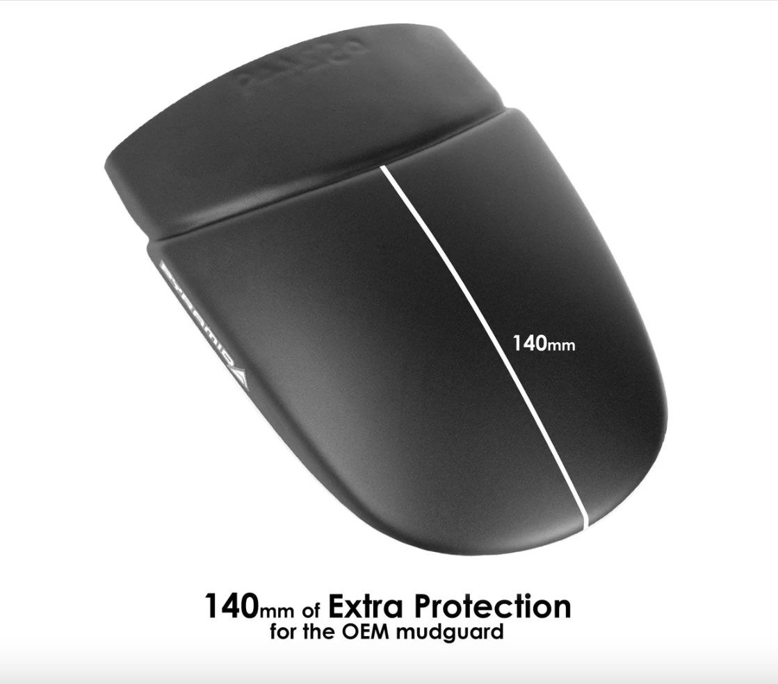 - Extends the OEM front mudguard for increased protection
