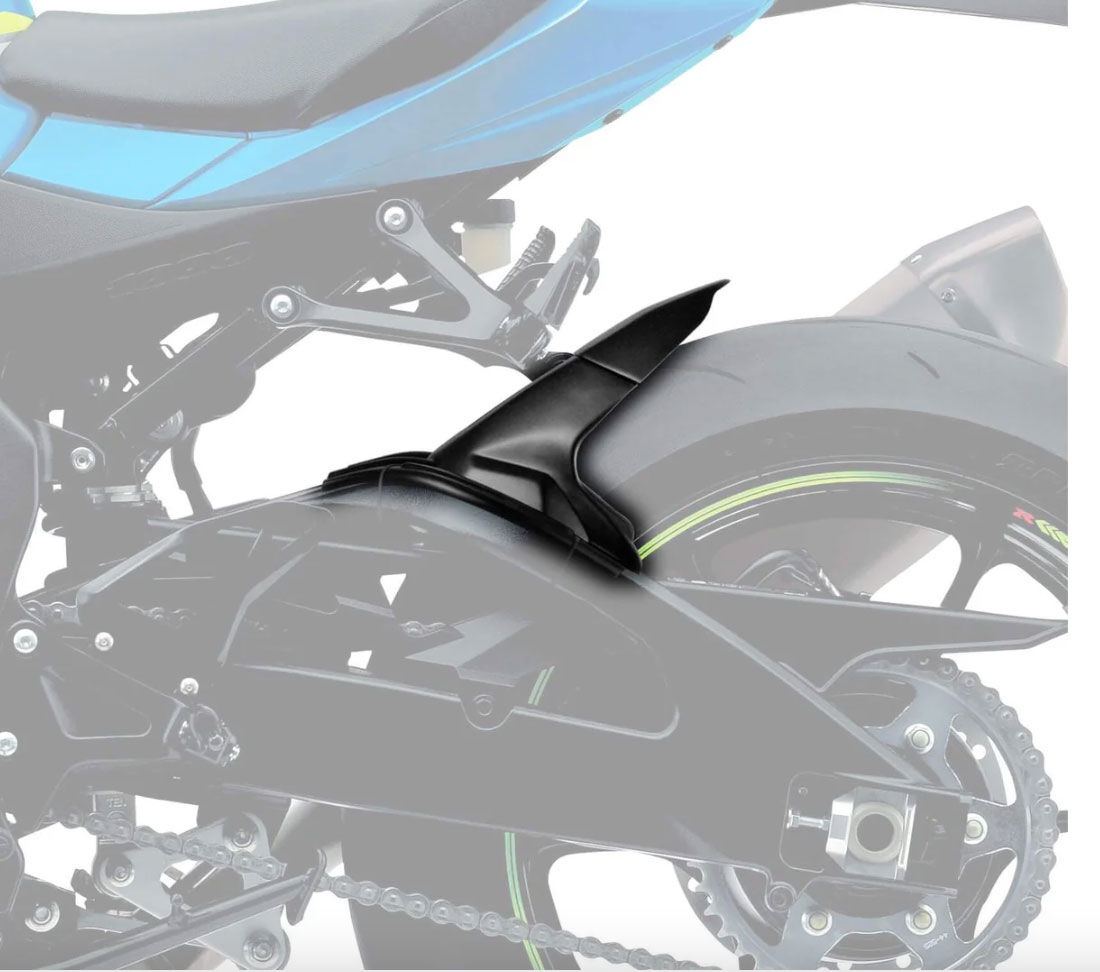 Specifically designed for the GSX-R1000, the hugger follows the lines of the motorcycle for a clean, integrated look while providing increased coverage to help protect the rear shock and surrounding areas. Its sleek matte black finish complements the bike’s styling for a subtle yet purposeful upgrade.