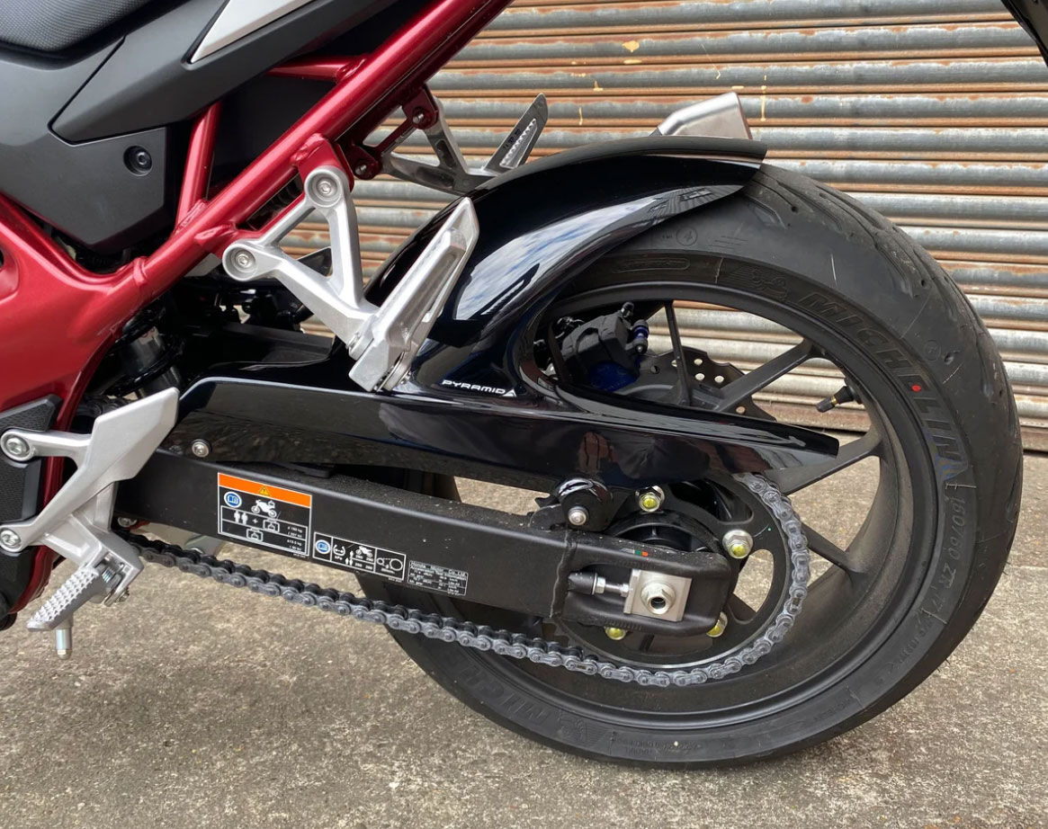 BRAND: Pyramid SKU: 071234MPyramid Huggers are one of our signature products, designed specifically for your motorcycle to provide enhanced protection and distinctive styling. Each Hugger is crafted to offer maximum coverage while incorporating a built-in chainguard to replace your existing one—keeping your chain and shock absorber fully protected.
