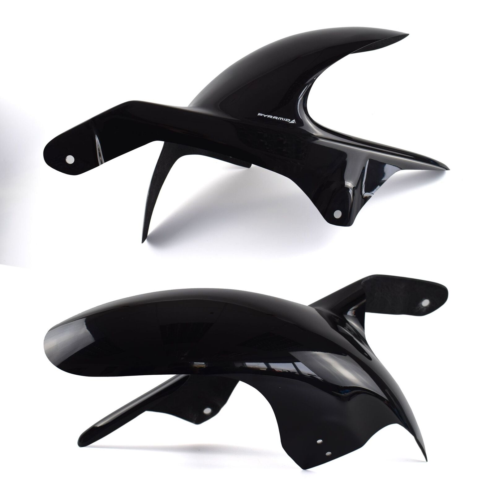 Pyramid Huggers are one of our trademark products designed specifically for your motorcycle and offering substantial added protection and individual styling. Where possible we incorporate protection that extends below the swingarm together and features a built-in chainguard to replace your existing guard meaning that your shock absorber and chain are fully protected. Available in a wide range of colour schemes our Huggers will arrive safely packaged together and features comprehensive fitting instructions and any additional fittings which may be required. No modification to your motorcycle is necessary.