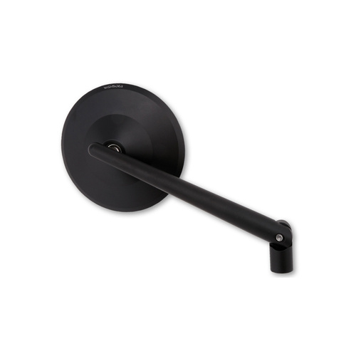 Classic round mirror in a bead blasted black satin finish. This aesthetic BLAST surface look has a discreetly noble effect. The mirror arm is continuously adjustable at the joint and a corrosion-resistant stainless steel ball clamp at the mirror head allows precise adjustment of the mirror. The screw connection with the handlebar fittings is made via an adapter (M10x1.25) with lock nut and is therefore suitable for most models on the market. For Yamaha models with left-hand thread, a corresponding adapter is included. Can be used for left and right side, E-approved.