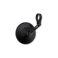 Universal handlebar end mirror, noble design, with a round head made of black anodized aluminum. The mirror arm is equipped with three stylish air slits. A hinge on the clamp provides additional adjustment for better visibility.