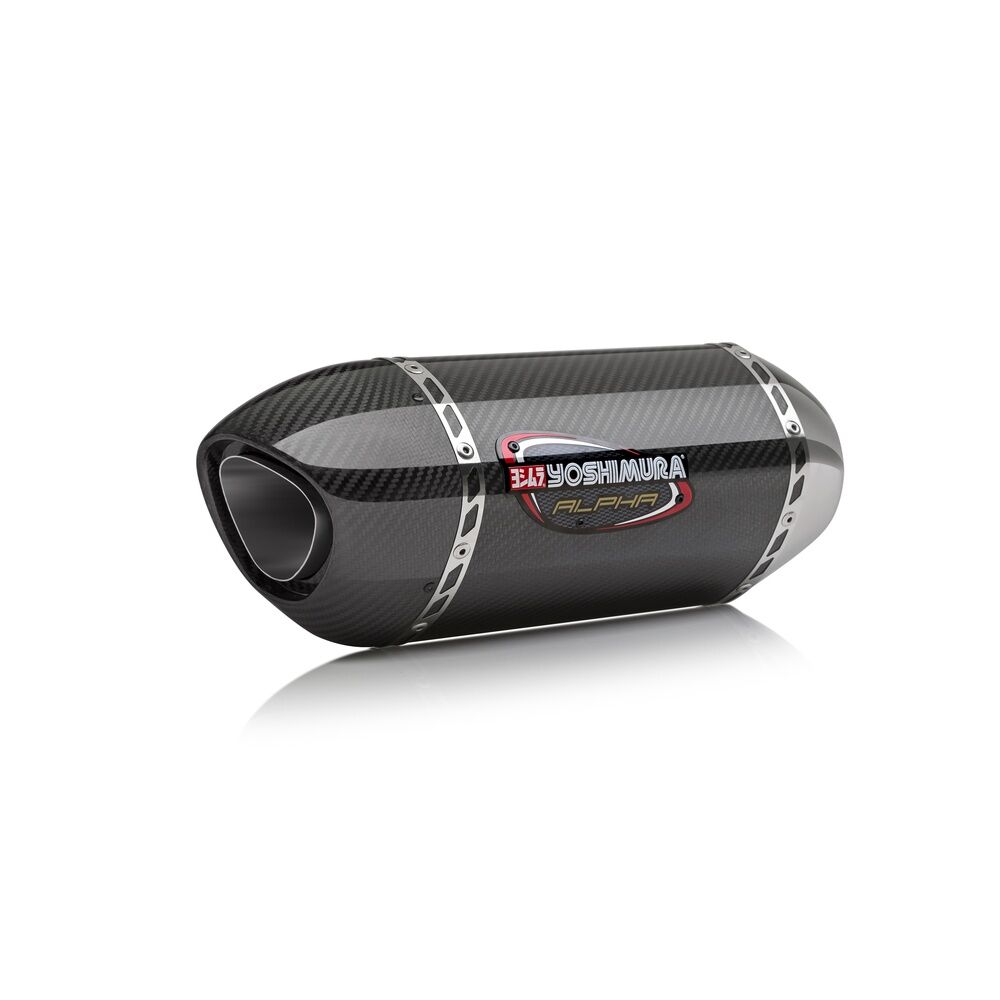 This is a Yoshimura GSX-R600/750 11-24 ALPHA Stainless Slip-On Exhaust, w/ Carbon Fiber Muffler