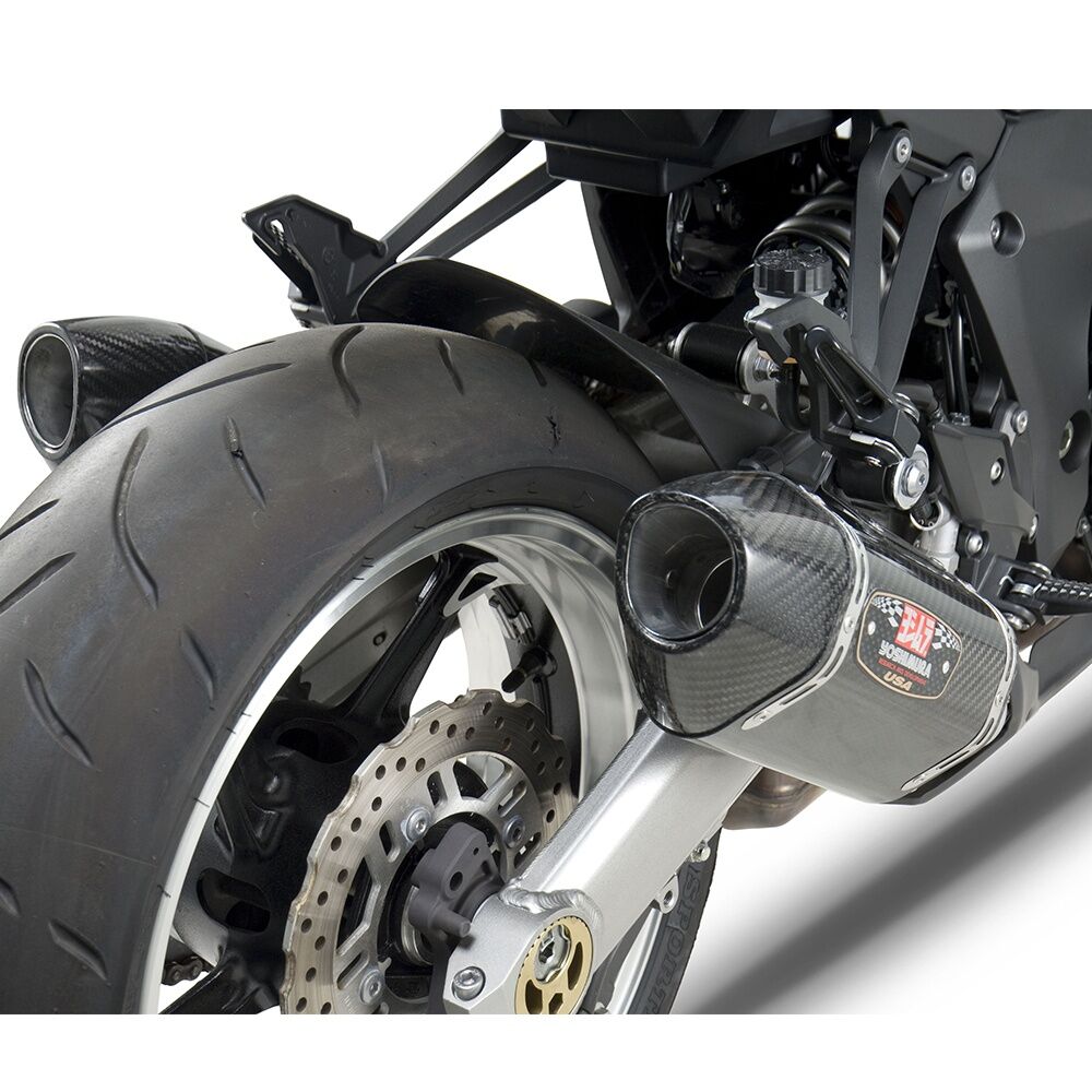 This is a Yoshimura Z1000 10-16 R-77 Stainless Slip-On Exhaust, w/ Carbon Fiber Mufflers