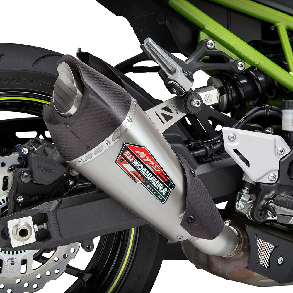 This is a Yoshimura Z900 17-24 AT2 Stainless Slip-On Exhaust, w/ Stainless Muffler