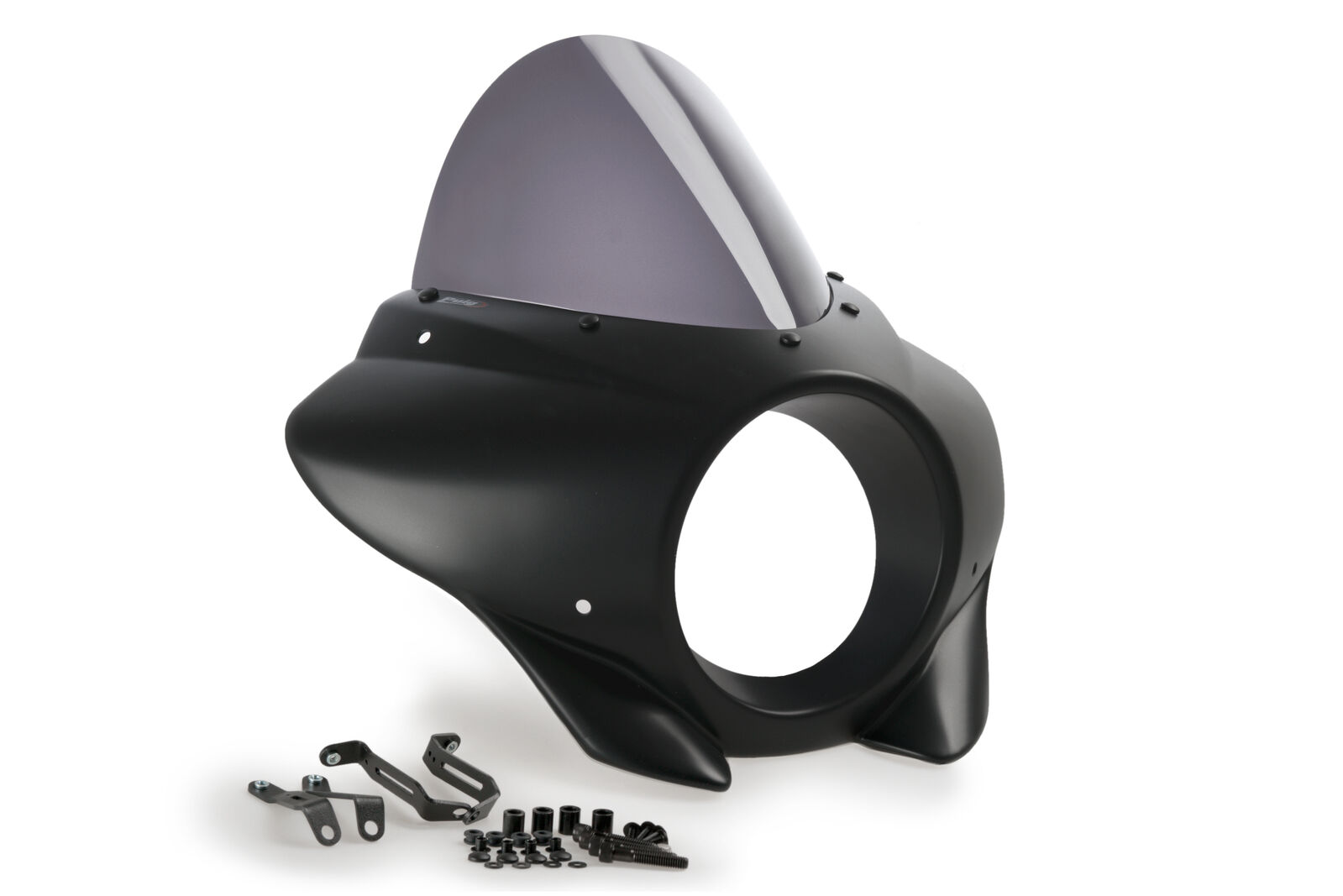 The Mirage semi-fairing is a very universal accessory since its design easily adapts to motorcycles with a round headlight, covering the front part around the headlight, protecting it from dirt and small impacts.