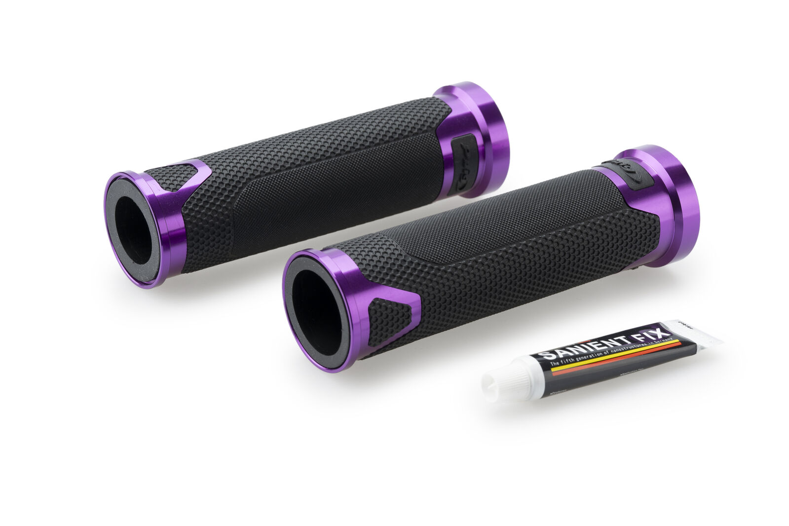 BRAND: Puig SKU: 22272LThese innovative grips with purple highlights combine rubber and metal, creating a sporty style that enhances the aesthetics of your bike.