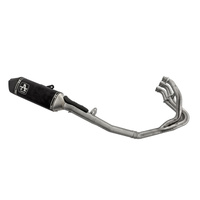 The Arrow Veloce Racing Full Exhaust System (71005VAN) is designed for the Triumph Street Triple 765 RS, offering a high-performance racing upgrade with aggressive styling. Featuring a dark aluminium silencer with a carbon fibre end cap, this system reduces weight, improves exhaust flow, and delivers a sharper race-bred sound.