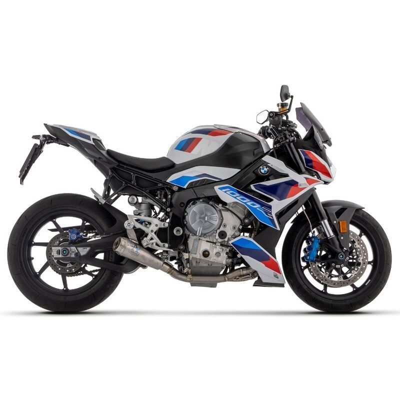 The Arrow Competition Low Full Titanium Exhaust (71228CP) is a complete racing exhaust system developed for the BMW M 1000 R. Featuring a full titanium construction, this low-mounted kit delivers maximum weight savings, enhanced durability, and a true competition sound. Designed to fit with the original footrest, it ensures precise installation and uncompromised performance.