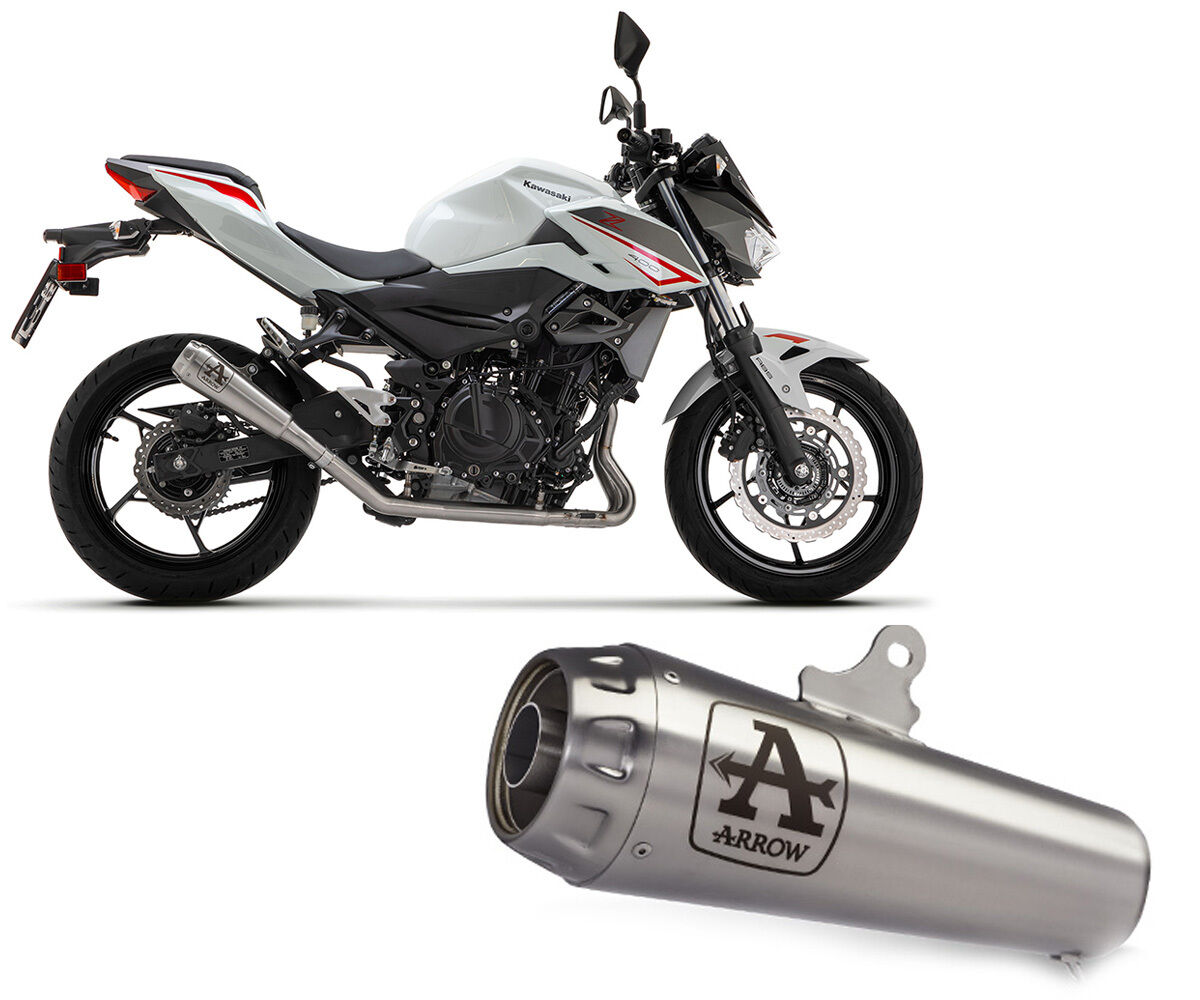 Arrow Nichrom Pro-Race Exhaust for Kawasaki Z 400 (2019). Constructed entirely from stainless steel with a welded mount for durability. Compact 250mm body delivers a race-inspired look and sound, Euro 4 approved with DB killer included.