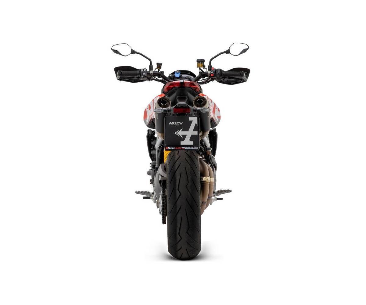 Arrow Pro-Race Black Nichrom exhaust muffler for Ducati Hypermotard 950 and SP 2022–2024. Euro 5 approved slip-on silencer designed for improved performance and sound. Retains original (OEM) catalyzer. Note: not compatible with original side panels.