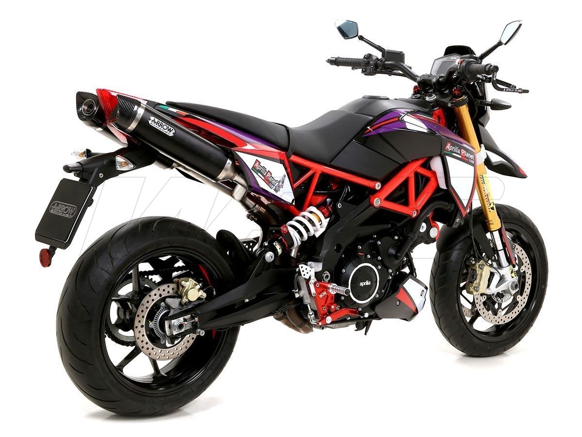 Arrow Exhaust - Aprilia Dorsoduro 750 2009 > 2017 Link Pipe 1:2+approved Street Thunder Black Aluminum Exhausts Carbon End Cap