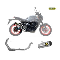 Arrow Works titanium full exhaust system for Yamaha MT-09 2021–2023. This Euro 5 approved system includes a catalyzer, ensuring legal compliance while still reducing weight and delivering a sharper exhaust tone. Designed for riders wanting premium performance and durability.