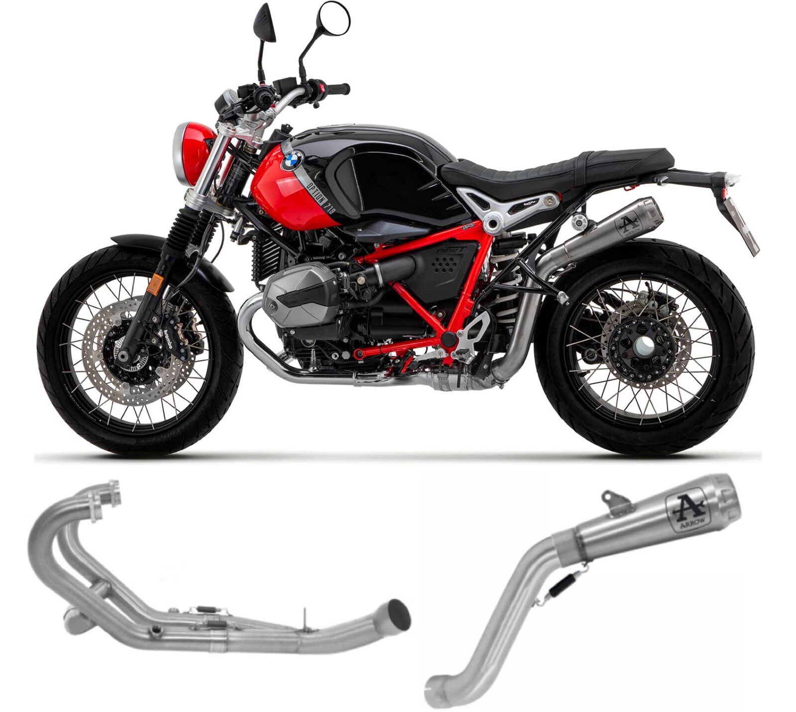 Arrow Pro-Race Titanium exhaust terminal kit with racing non-catalytic collector for BMW R Nine T Scrambler 2021–2023. Lightweight full titanium system, Euro 5 approved silencer with racing headers for maximum performance.