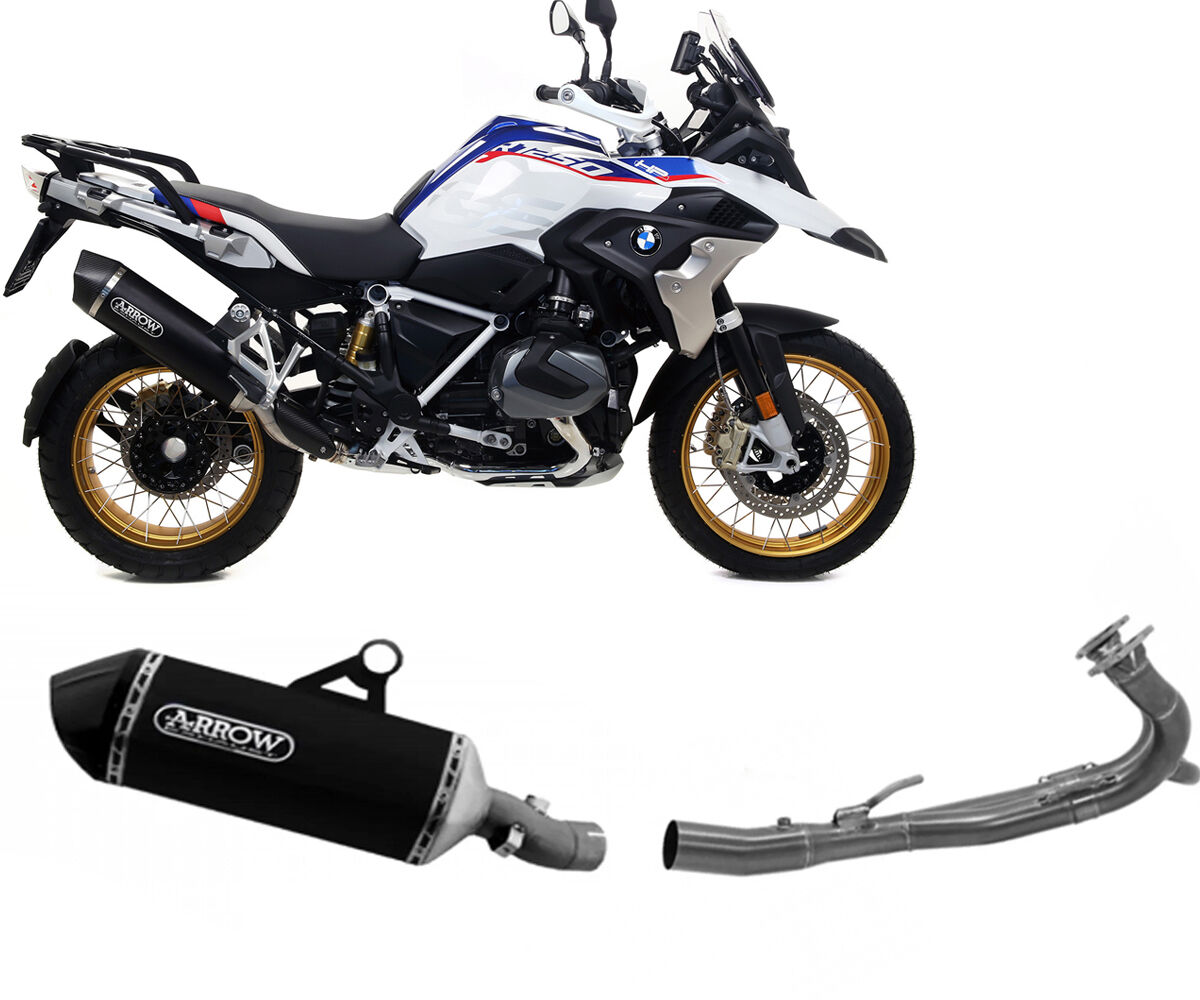 Arrow Sonora Racing Dark Titanium/Steel full system exhaust with carbon fibre end cap for BMW R 1250 GS (2019–2023). This complete system combines stainless steel headers with a titanium dark silencer, delivering durability, weight savings, and performance with premium styling. Fully ECE approved for road use.