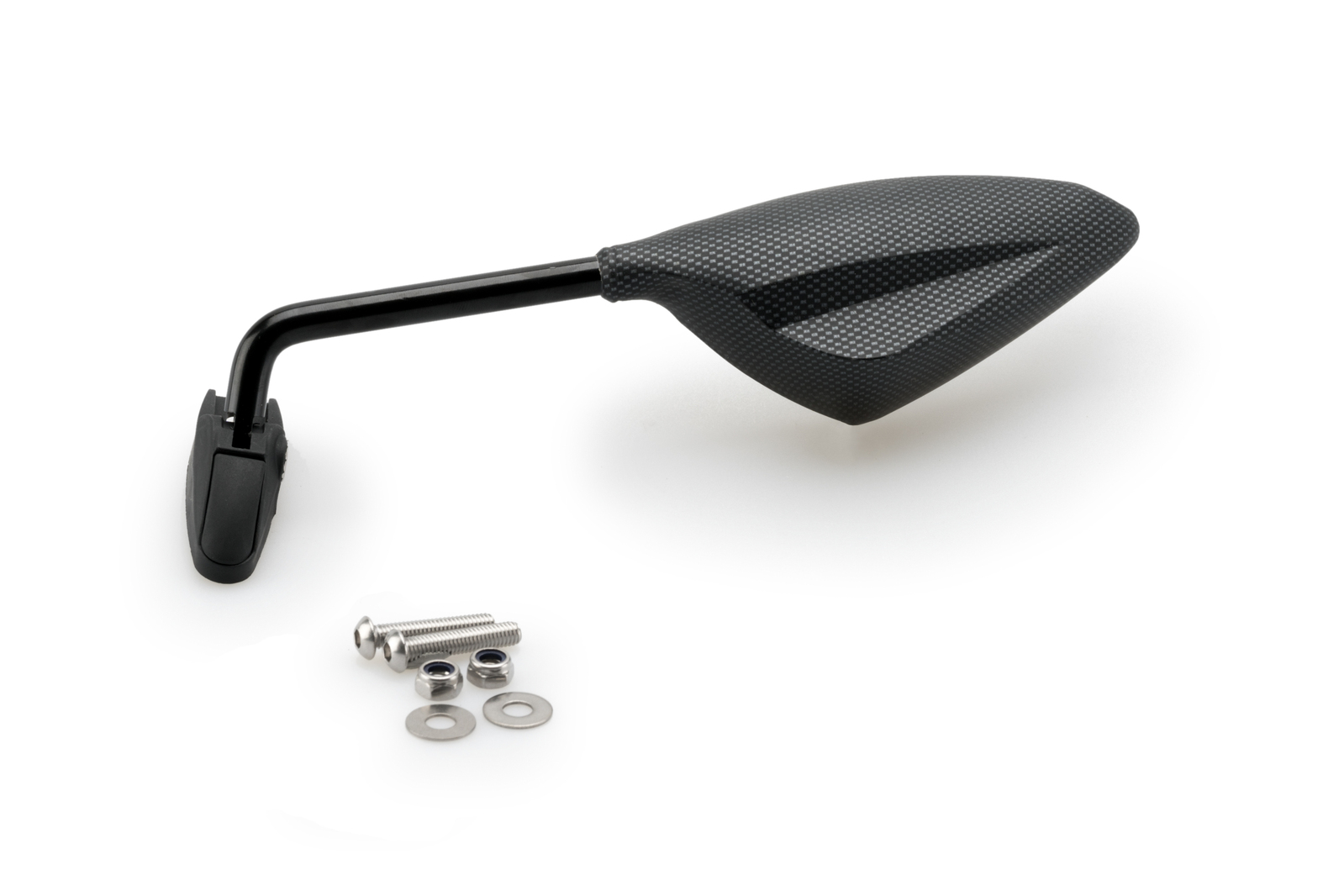 This rearview mirror, not approved, has a plastic shell in matt black or carbon-like finish and can be adapted to any type of motorcycle.