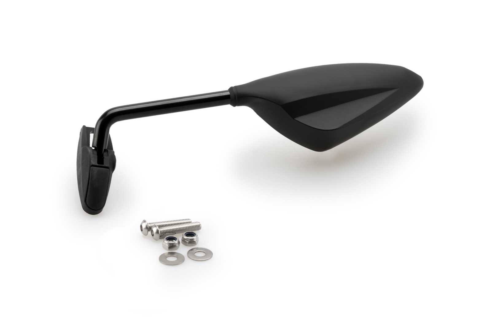 This rearview mirror, not approved, has a plastic shell in matt black or carbon-like finish and can be adapted to any type of motorcycle.