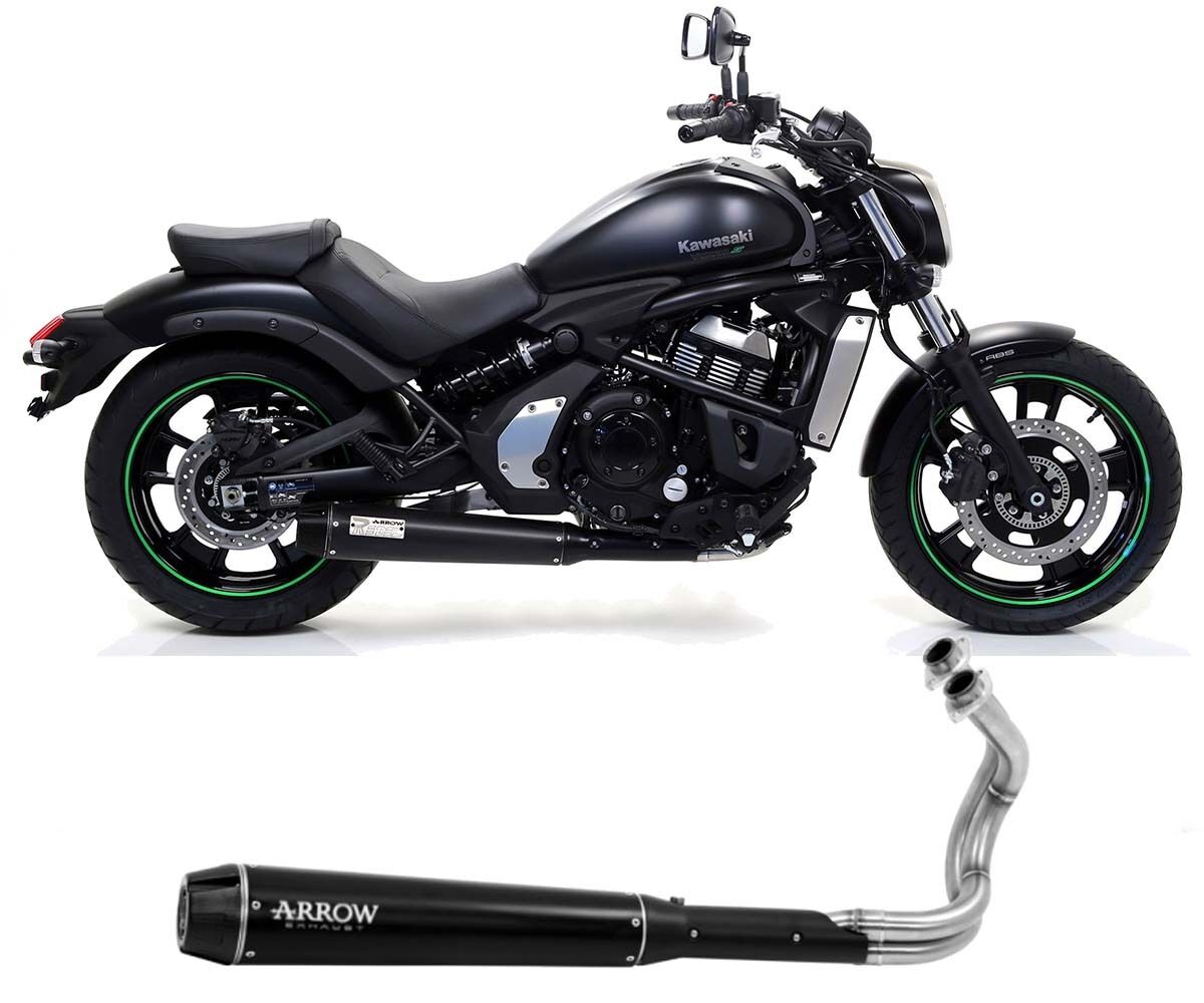 Arrow Exhaust - Kawasaki Vulcan S 650 2021 > 2024 Full Exhaust Rebel Carbon End Cap Steel Black