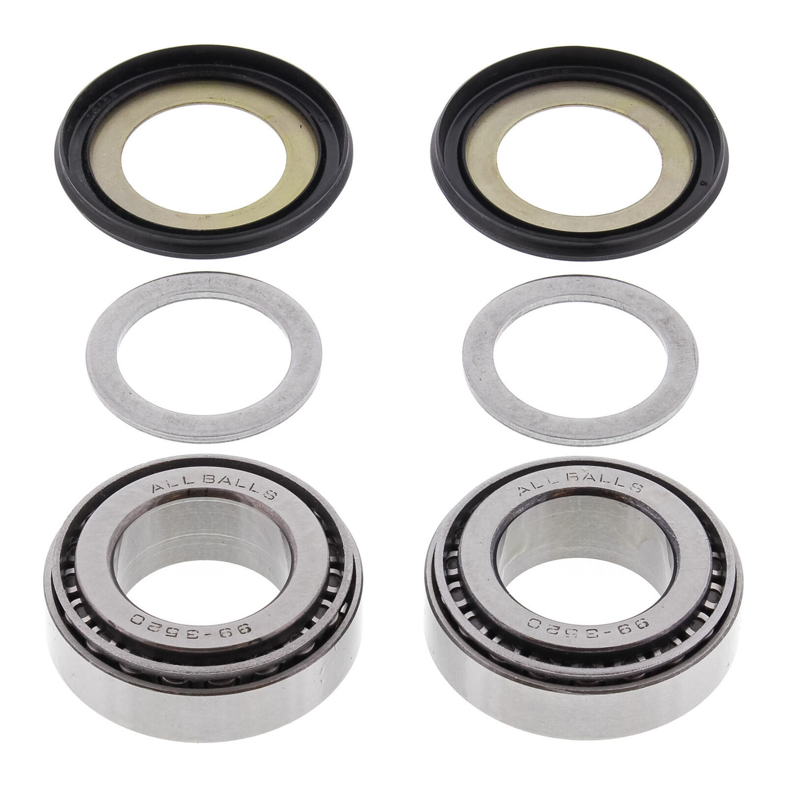 A quality Steering Head Bearing kit from All Balls. Heavy Duty Tapered Roller Bearings manufactured in Japan to exacting specifications so quality and durability is assured.Contains bearings and seals. Make your bike handle like new!