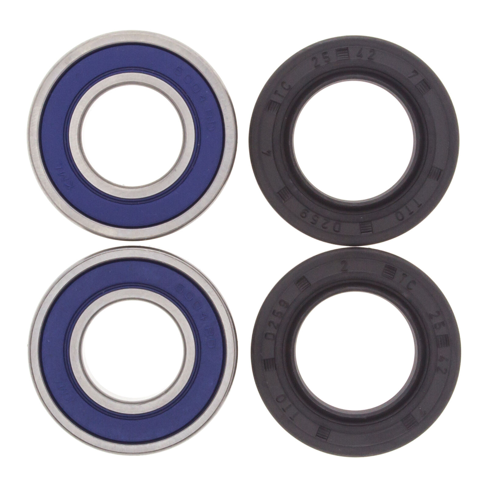 A quality Wheel Bearing Kit from All Balls. Contains Bearings and seals required as per application. Precision high-speed bearings manufactured to ABEC3 standards. Each Bearings is packed with Chevron SR-2 grease. The Seals use double lips to stop dirt entering. Install these Bearings and enjoy trouble free riding for years to come.