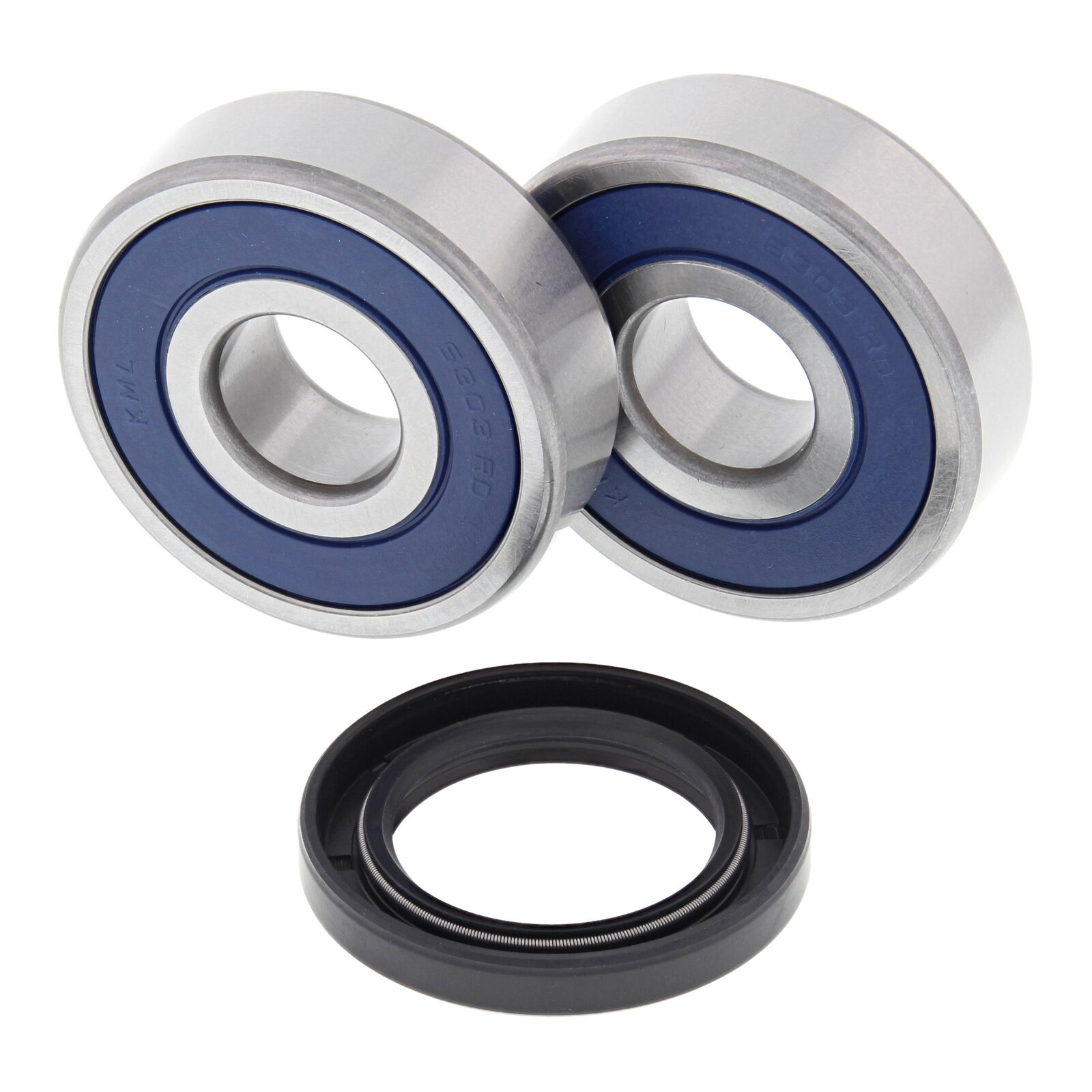 A quality Wheel Bearing Kit from All Balls. Contains Bearings and seals required as per application. Precision high-speed bearings manufactured to ABEC3 standards. Each Bearings is packed with Chevron SR-2 grease. The Seals use double lips to stop dirt entering. Install these Bearings and enjoy trouble free riding for years to come.