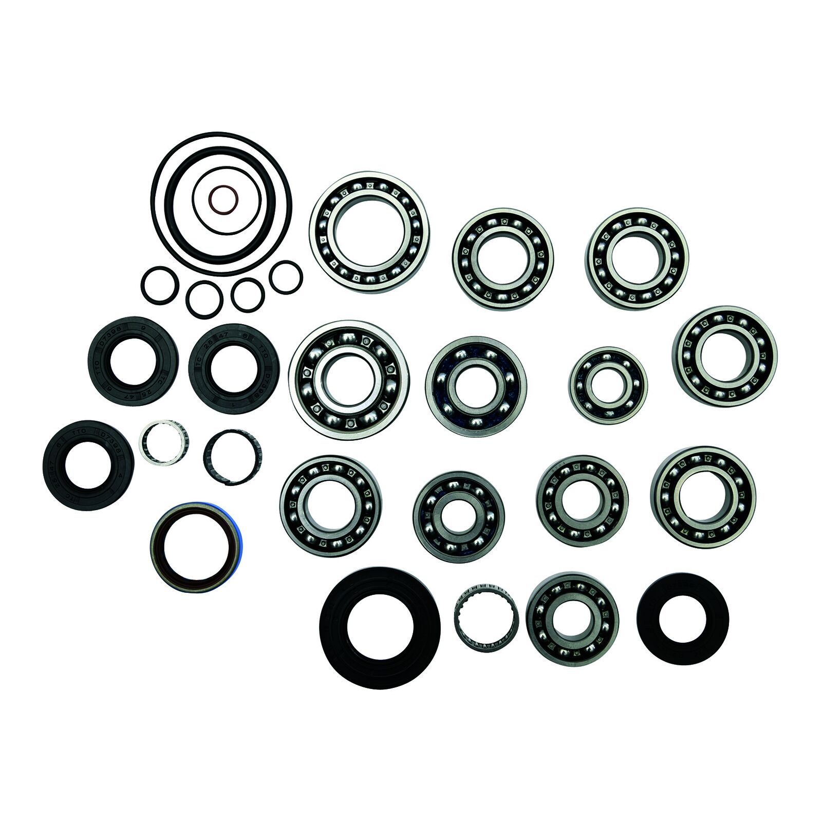 • Comprehensive kit for transmission rebuild includes bearings seals o-rings and shims.