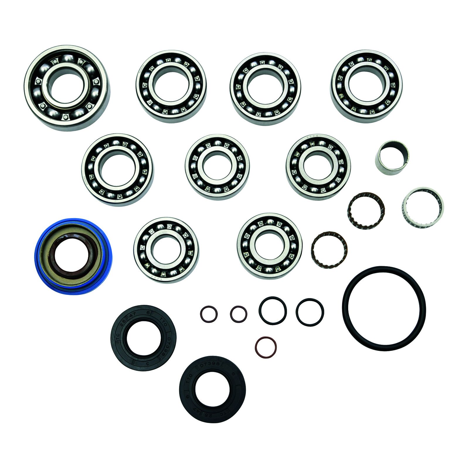 • Comprehensive kit for transmission rebuild includes bearings seals o-rings and shims.