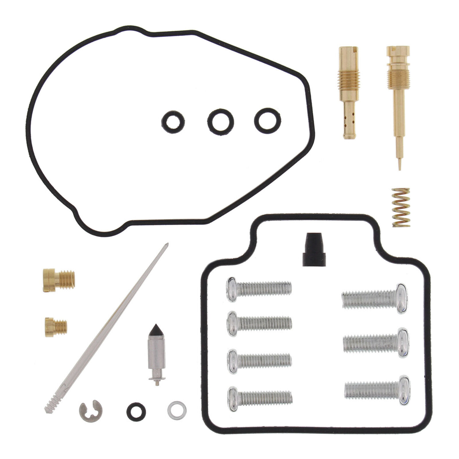- Kit includes necessary all O-rings gaskets jets needle mixture screw float bowl screws float valve needles and seat. (Needle jet and other pressed-in jets are not included in the kit.)