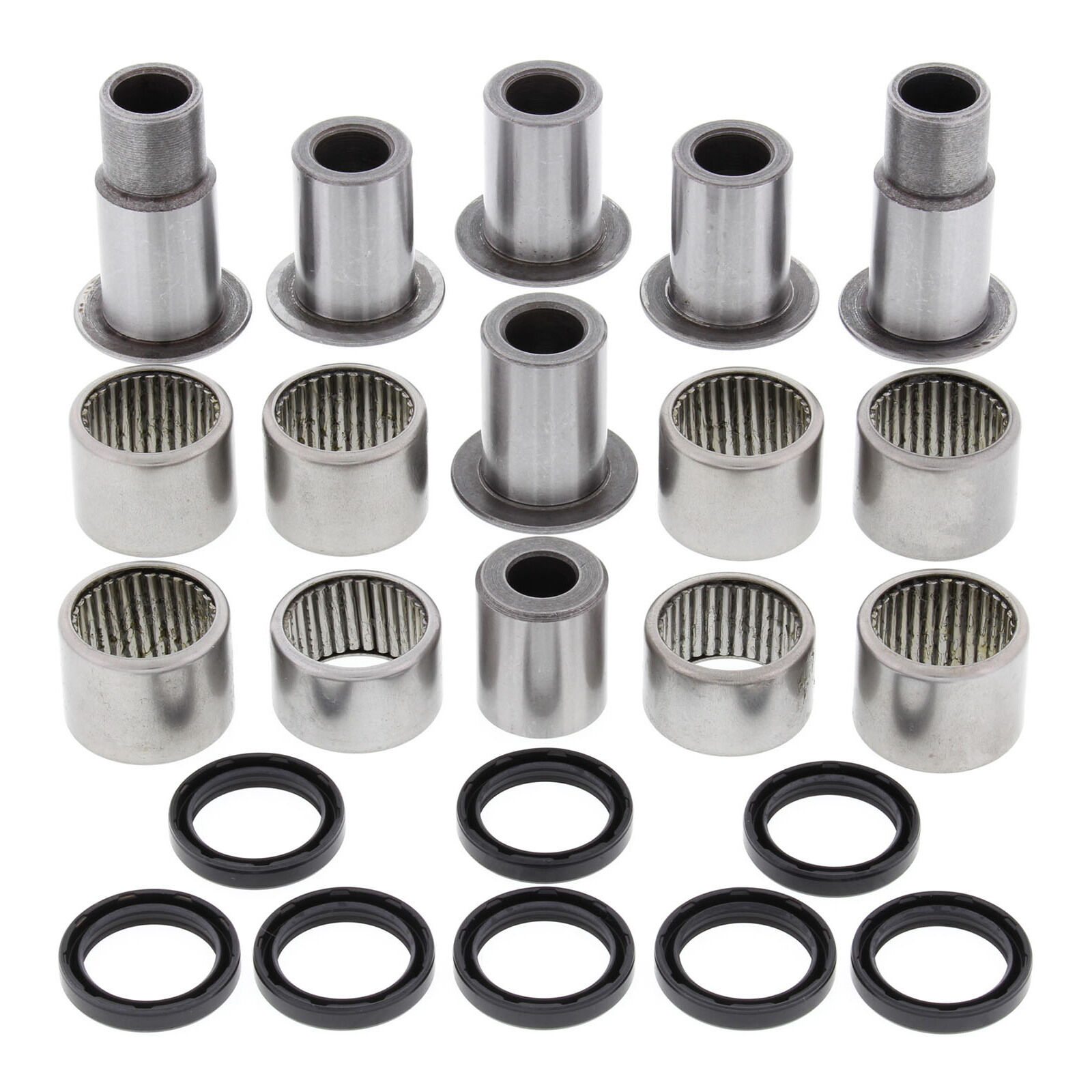 A Quality Suspension Linkage Kit from All Balls Racing. Kit includes lower shock bearing kit! Needle Bearings are made from 52100 bearing steel ARC61-65 heat treated ST13 steel shell. Bushings are case hardened and plated to prevent wear and corrosion. Shafts are made from 52100 Bearing steel through hardened and precision ground.