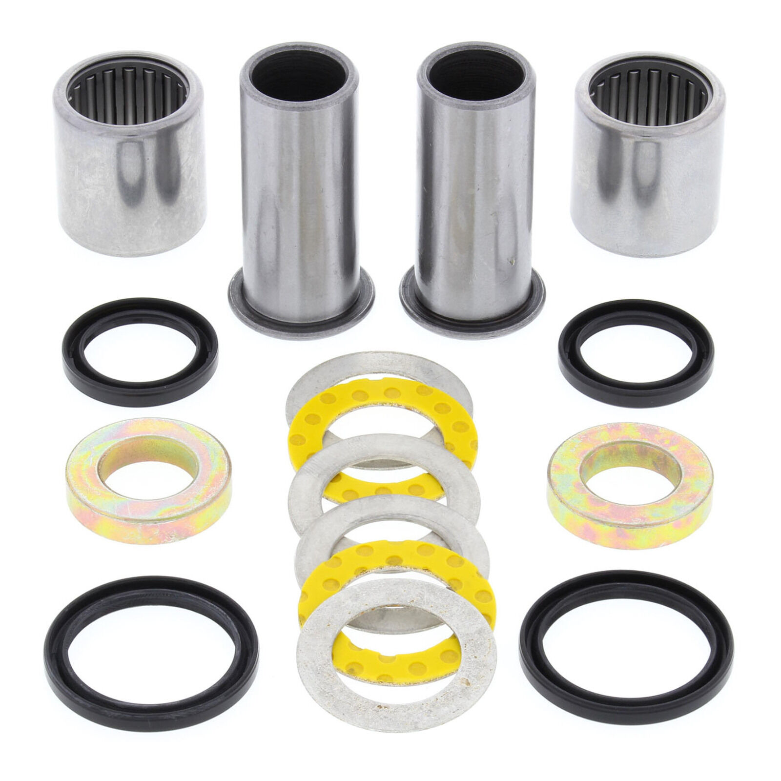 A Quality Swing Arm Repair Kit from All Balls Racing. Bushings are case hardened and plated to prevent wear and corrosion. POM composite washer bearings replace thrust needle washers for susperior resistance to water and dirt and increase service life. Shafts are made from 52100 Bearing steel through hardened and precision ground. Needle Bearings are made from 52100 bearing steel and ARC61-65 heat treated ST13 steel shell.
