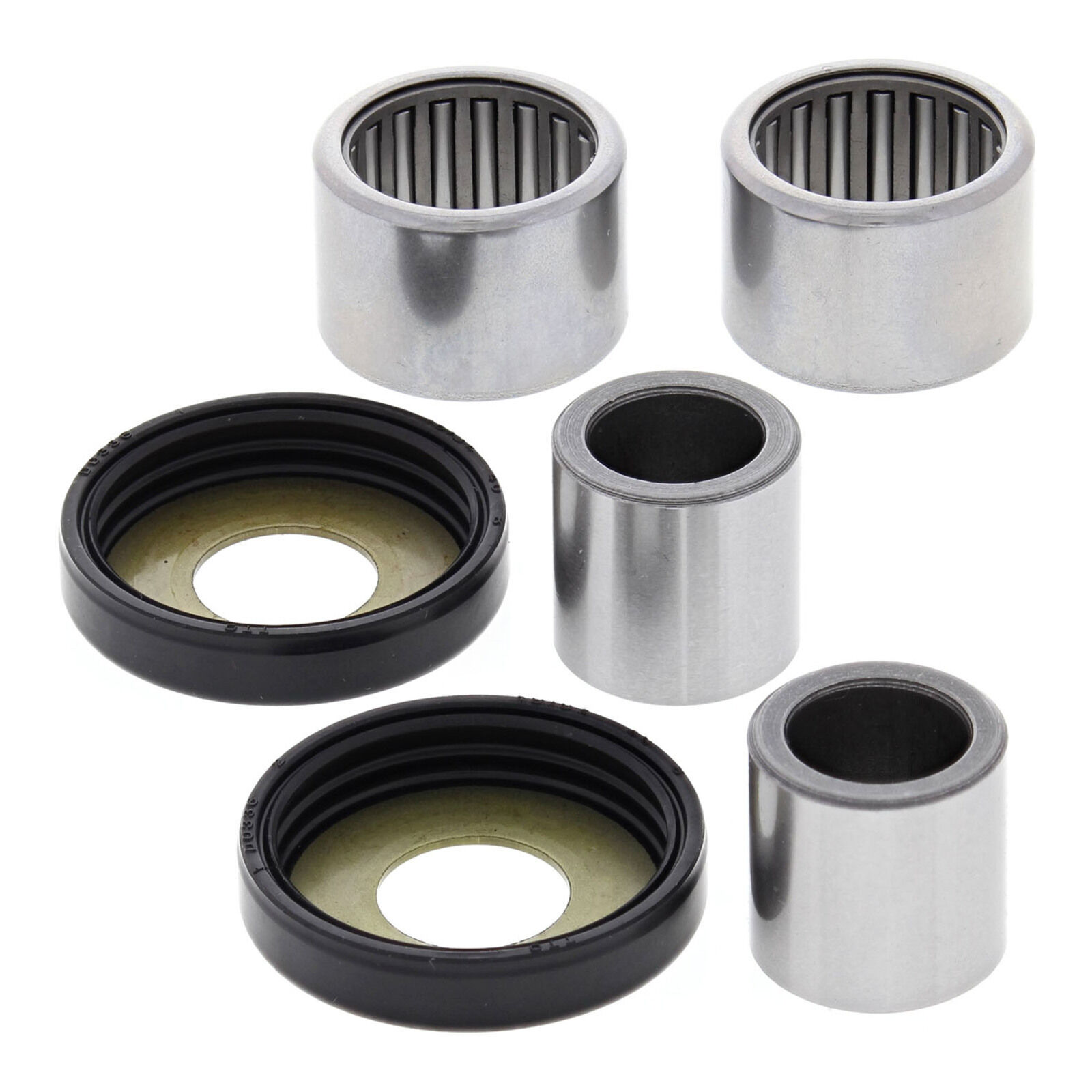A Quality Swing Arm Repair Kit from All Balls Racing. Bushings are case hardened and plated to prevent wear and corrosion. POM composite washer bearings replace thrust needle washers for susperior resistance to water and dirt and increase service life. Shafts are made from 52100 Bearing steel through hardened and precision ground. Needle Bearings are made from 52100 bearing steel and ARC61-65 heat treated ST13 steel shell.