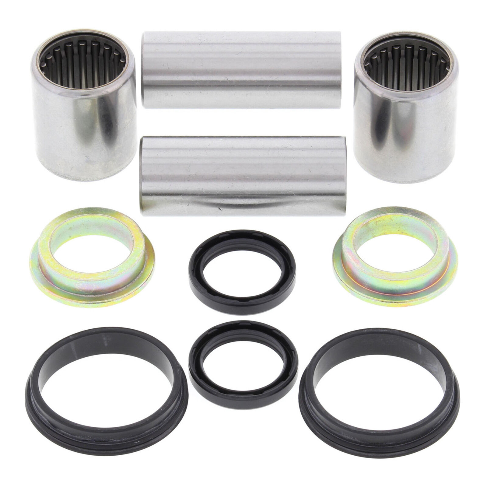 A Quality Swing Arm Repair Kit from All Balls Racing. Bushings are case hardened and plated to prevent wear and corrosion. POM composite washer bearings replace thrust needle washers for susperior resistance to water and dirt and increase service life. Shafts are made from 52100 Bearing steel through hardened and precision ground. Needle Bearings are made from 52100 bearing steel and ARC61-65 heat treated ST13 steel shell.