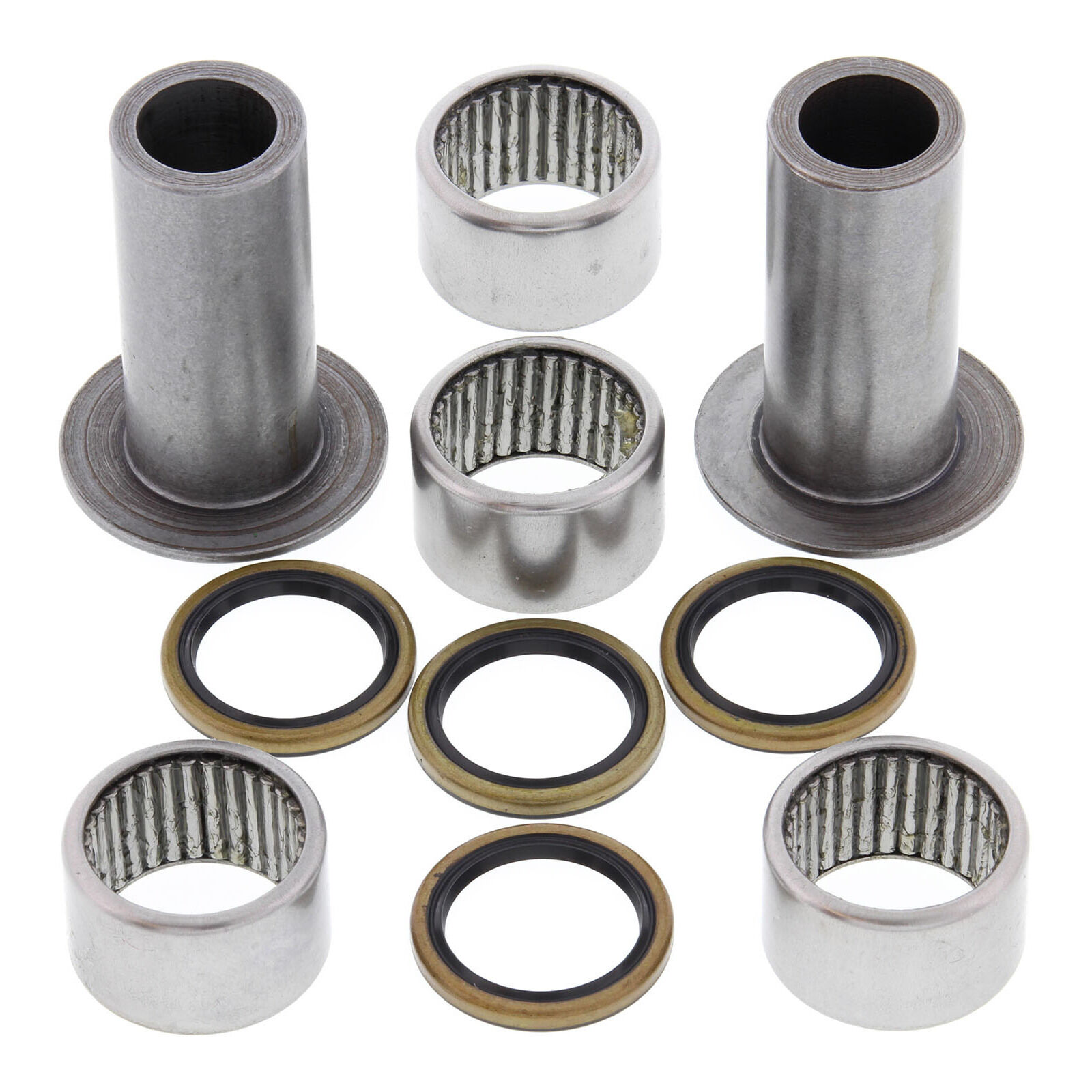 A Quality Swing Arm Repair Kit from All Balls Racing. Bushings are case hardened and plated to prevent wear and corrosion. POM composite washer bearings replace thrust needle washers for susperior resistance to water and dirt and increase service life. Shafts are made from 52100 Bearing steel through hardened and precision ground. Needle Bearings are made from 52100 bearing steel and ARC61-65 heat treated ST13 steel shell.