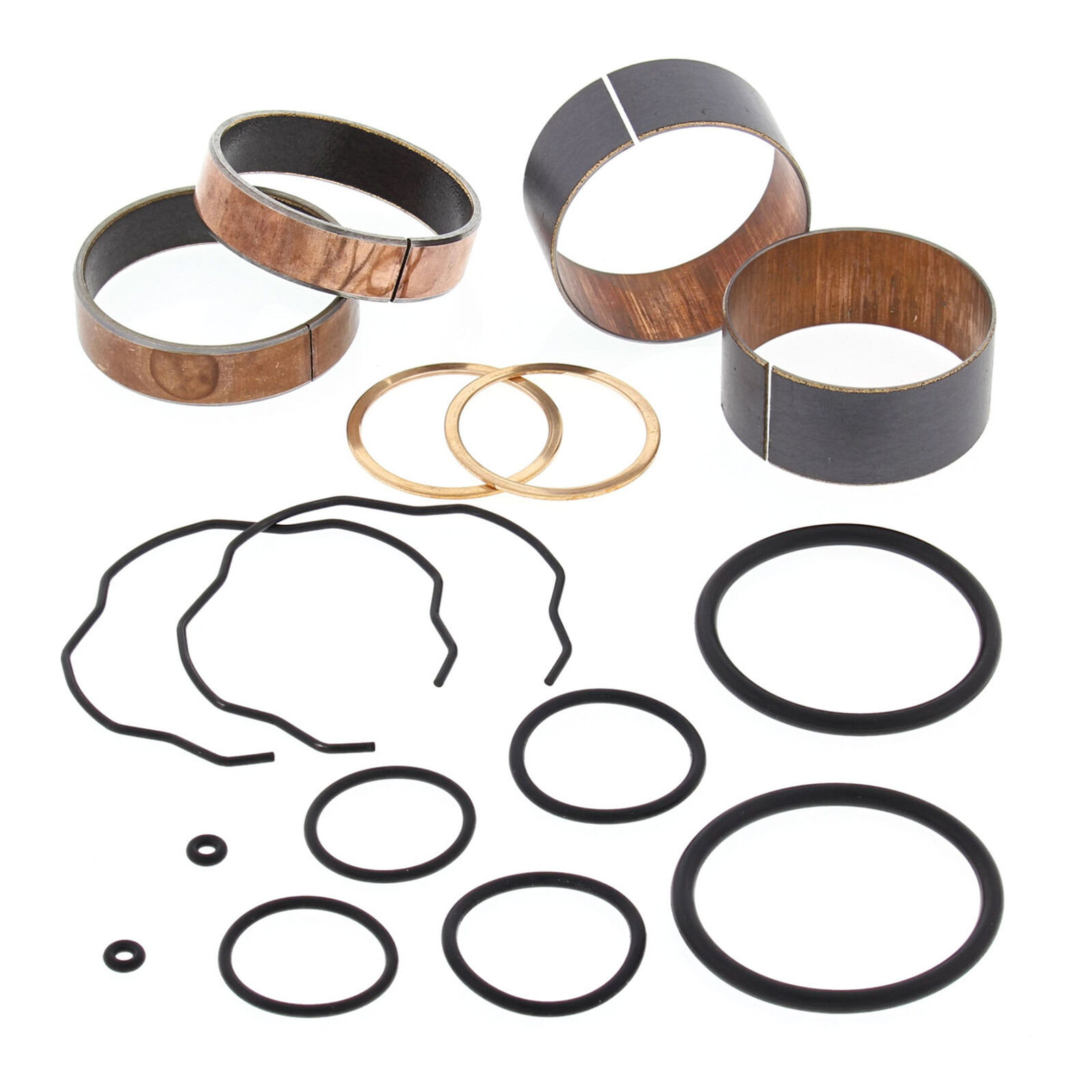 A Quality Fork Bushing Kit from All Balls Racing. Bushings Dyno tested to 500 000 strokes with less wear than OEM bushings. Includes 2 slider bushings and 2 leg bushings along with all copper washers o-rings and fork seal snap rings.