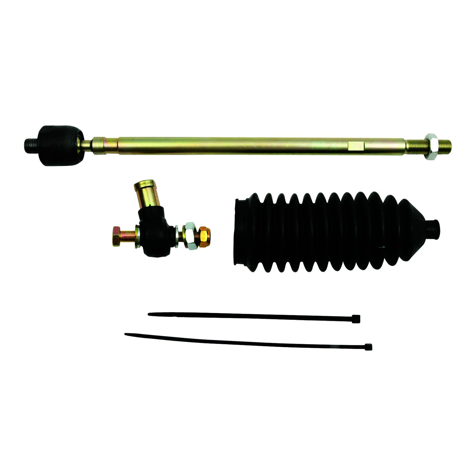 Rack kit contains tie rod end and shaft that connects to the steering rack as well as the outer tie rod end boot and the required hardware for one side.