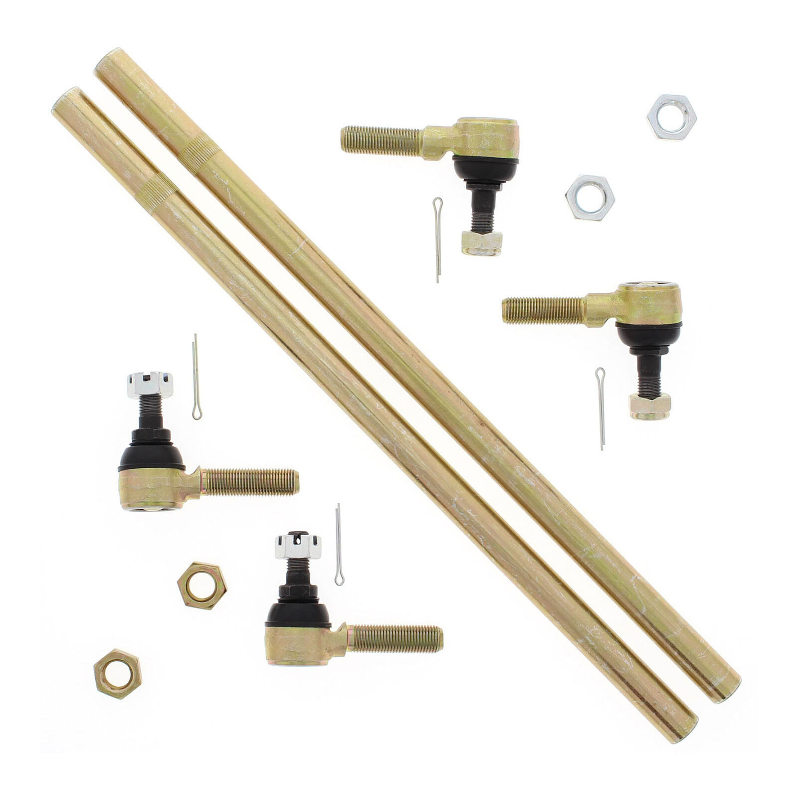 A Quality Tie Rod Upgrade Kit from All Balls racing. This kit will upgrade your OEM Tie Rod ends which are prone to failure to Heavy Duty. Much stronger than OEM. Each kit contains two tie rods four tie rod ends along with cotter pins and jam nuts.