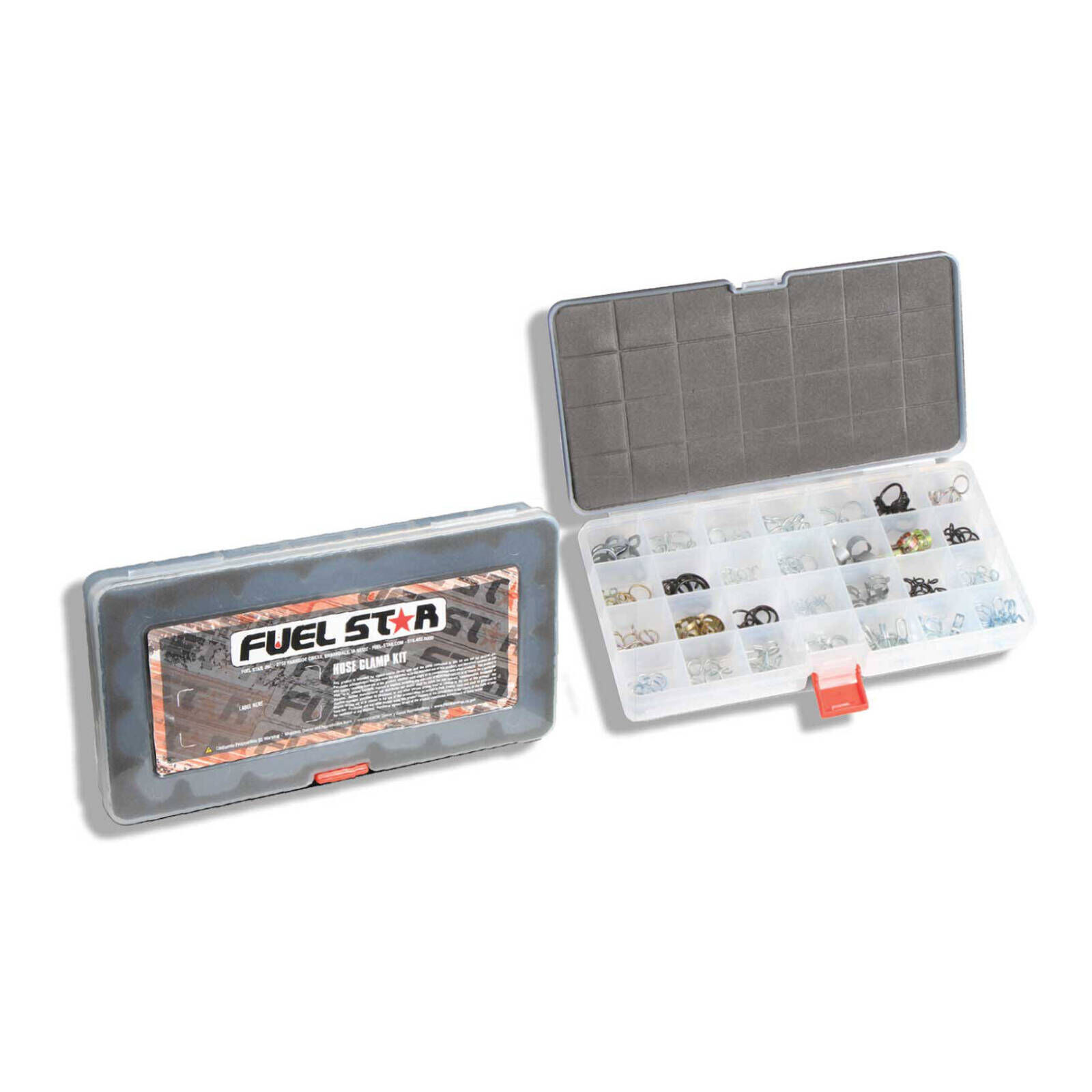 manufactured to meet or exceed OEM performance aesthetics and fit. The kit includes 28 different sizes ranging from 7-17mm inside diameter with 4 pack refills available separately for each clamp size. This kit is presented in an easy to access container with separate labelled slots for each clamp making part identification quick and simple perfect for your personal or professional motorcycle workshop.