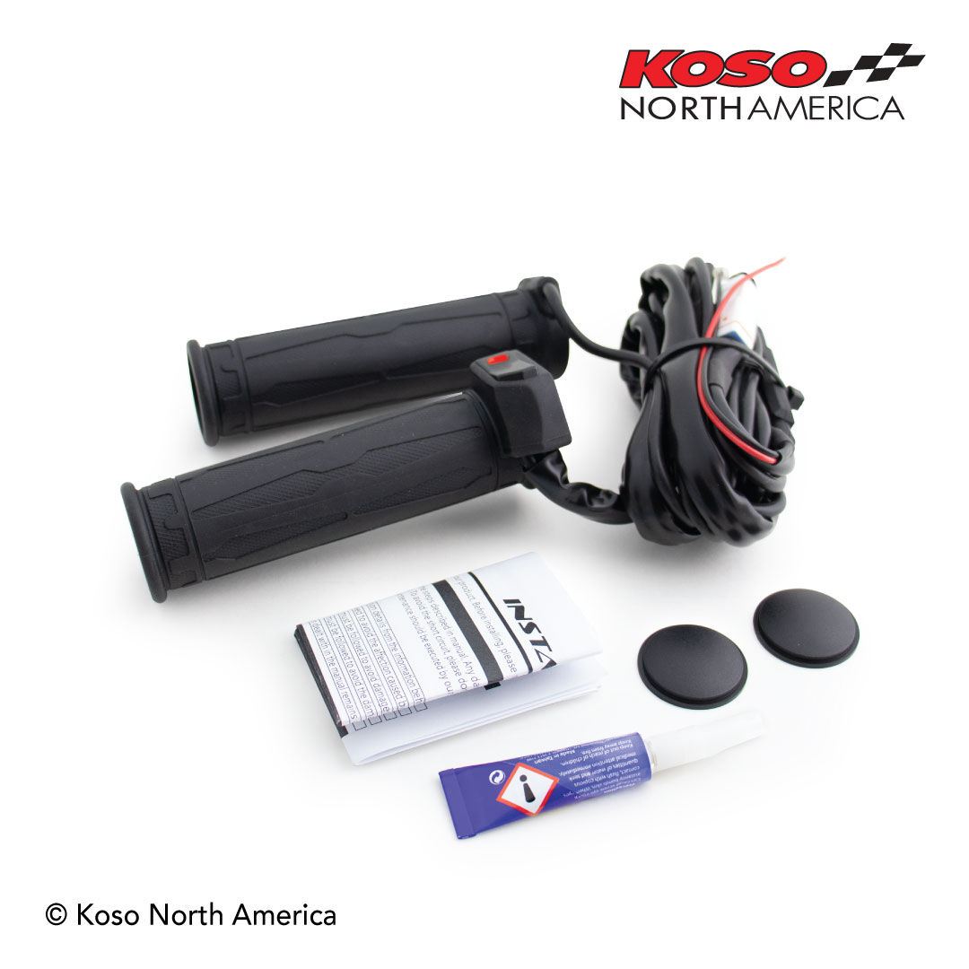 BRAND: Koso SKU: AM111030The Apollo heated grips are a prime example of koso’s ability to innovate. Finished are the days of cluttering your handlebars with control boxes and switches. The Apollo heated grips feature koso’s exclusive integrated thumb switch which provides you with the ability to power on and off the grips as well as rotate between the 5 levels of temperature.