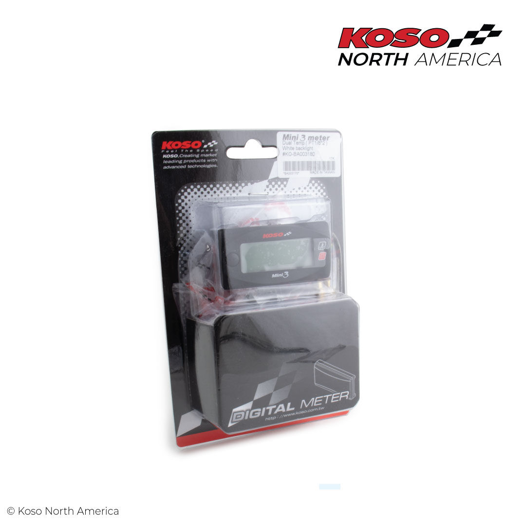 BRAND: Koso SKU: BA003170This compact and lightweight Mini 3 dual temperature meter features two temperatures output. This meter can give you precious information such as coolant and oil temperature. temperature and help you dress properly.