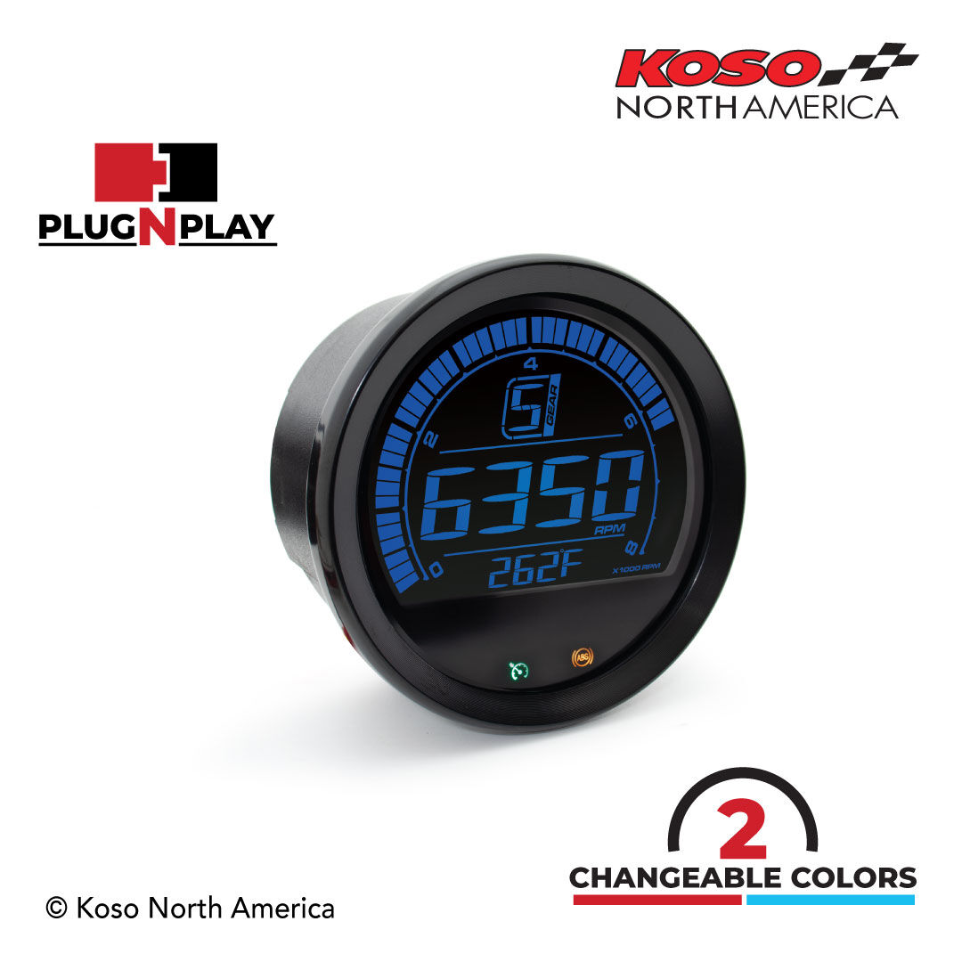 BRAND: Koso SKU: BA051110Our plug & play 0 to 8,000 RPM meter is equipped with a 2 color changeable LCD display. Not only does this meter provide the engine RPM, it displays the gear position, cruise control and ABS indicator light as well.connecting the instrument to a DC 12 V source of power.