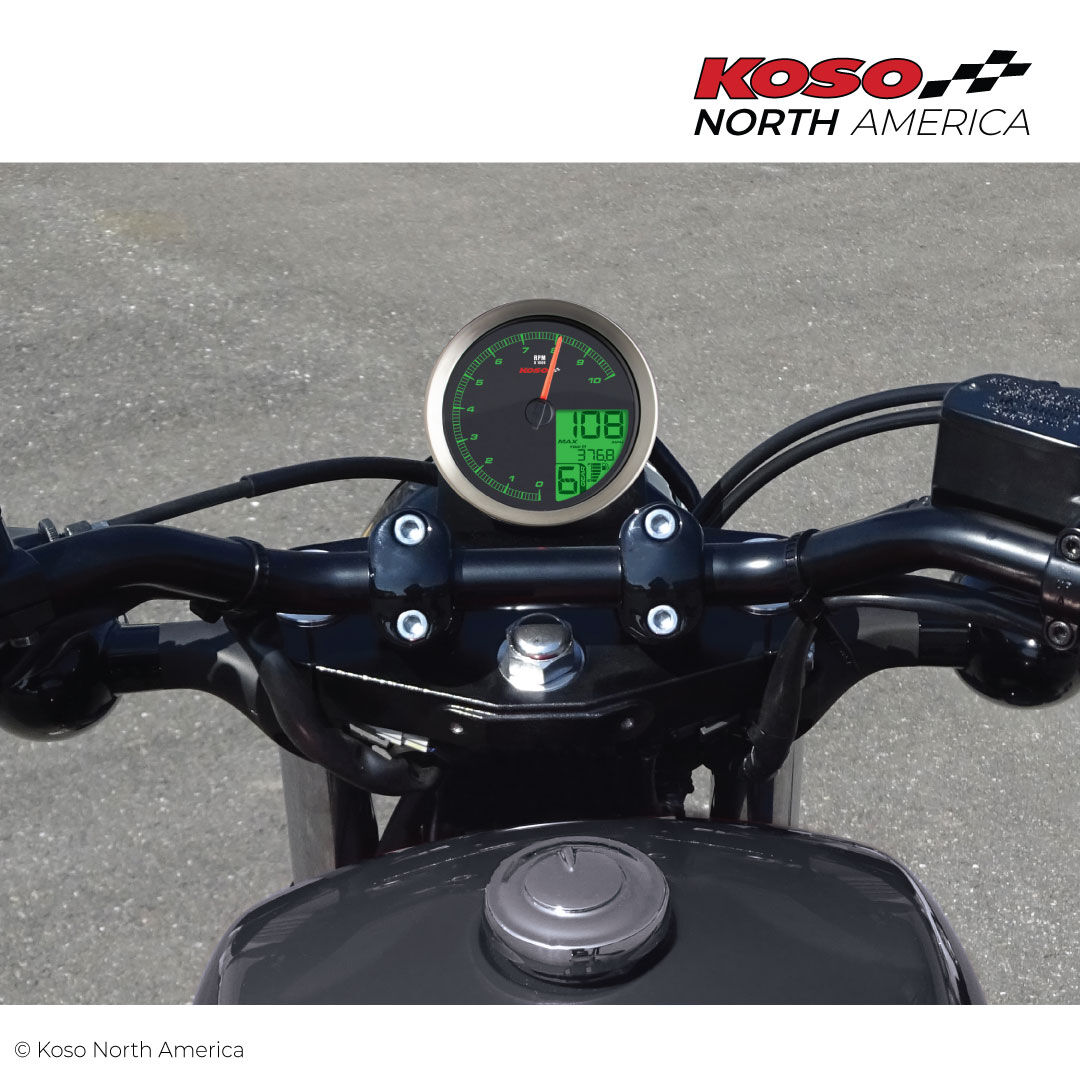 Our TNT‑04 multifunction meter is perfect for all special projects. It is equipped with a 8 color changeable LCD display and also uses a strong stepper motor that provides a precise and fast RPM reading so that you can get in‑time information. Some of the great functions this meter has to offer are  : speed, RPM, indicator lights, fuel level, and gear position indicator. Available in silver or black bezel, this is a great addition to customize your ride.