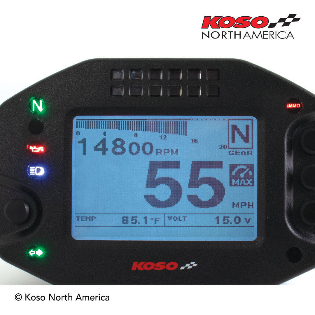 BRAND: Koso SKU: BA073000-WThe new RS-2 meter is a complete multifunction meter that is focused on the serious rider who likes to log their data to improve riding skills. You will be able to keep your target speed, target distance, maximum speed and maximum RPM. At the top of this meter, you will benefit from a group of red LEDs to get the right shift point.