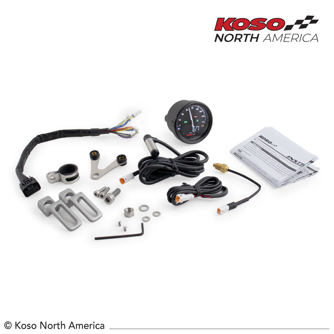 BRAND: Koso SKU: BA085001Providing basic functions such as speed, odometer, tripmeter, hour meter, fuel, voltage, clock and stopwatch, the TNT-05S speedometer is equipped with 8 changeable LCD display colors that also includes all the necessary indicator lights to give you all the data you need. The illuminated backlight makes the instrument very easy to read even in the darkest conditions.