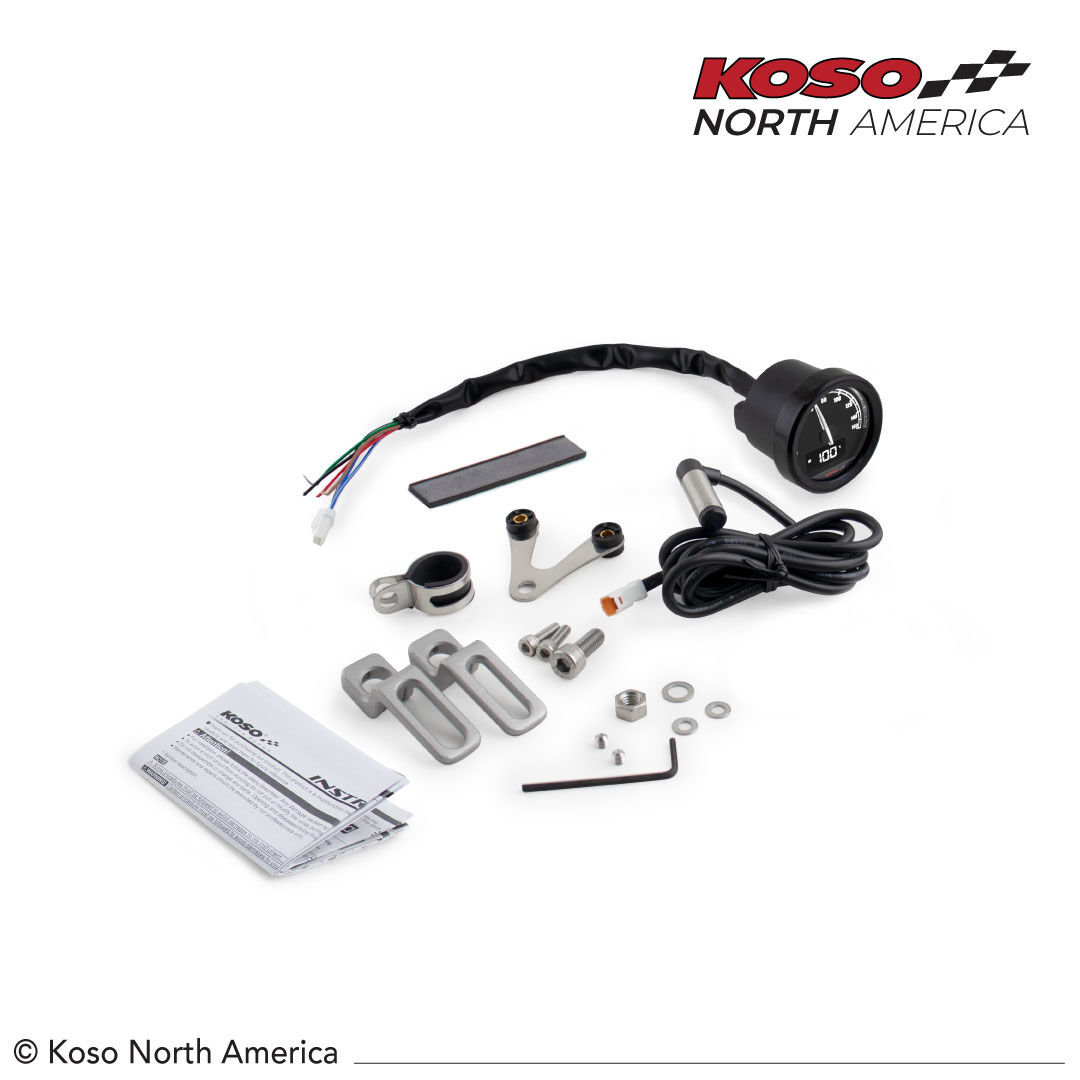 BRAND: Koso SKU: BA086001This smaller version of the TNT-05 speedometer can fit various locations and models while providing basic functions such as speed, odometer, tripmeter, fuel and voltage.Its compact LCD display is very easy to read even in the darkest conditions. It is equipped with all the necessary indicator lights and features 7 changeable display colors to fit your style.