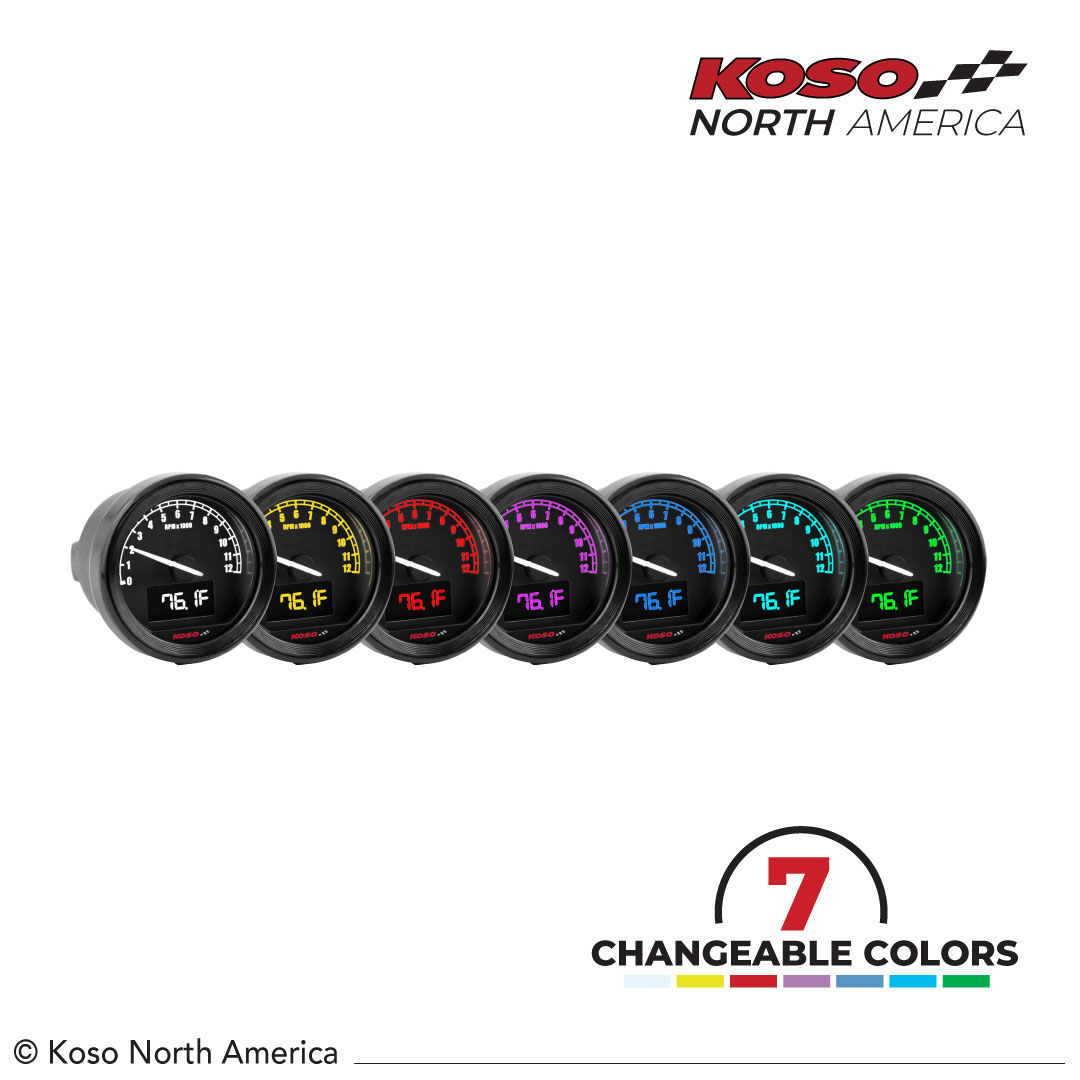 BRAND: Koso SKU: BA086101Whether it is day or night, this small-scaled TNT-05 tachometer will prevent your engine from being damaged with its warning function for temperature and voltage. You can also give different looks to your motorcycle with its 7 changeable LCD display backlight colors.