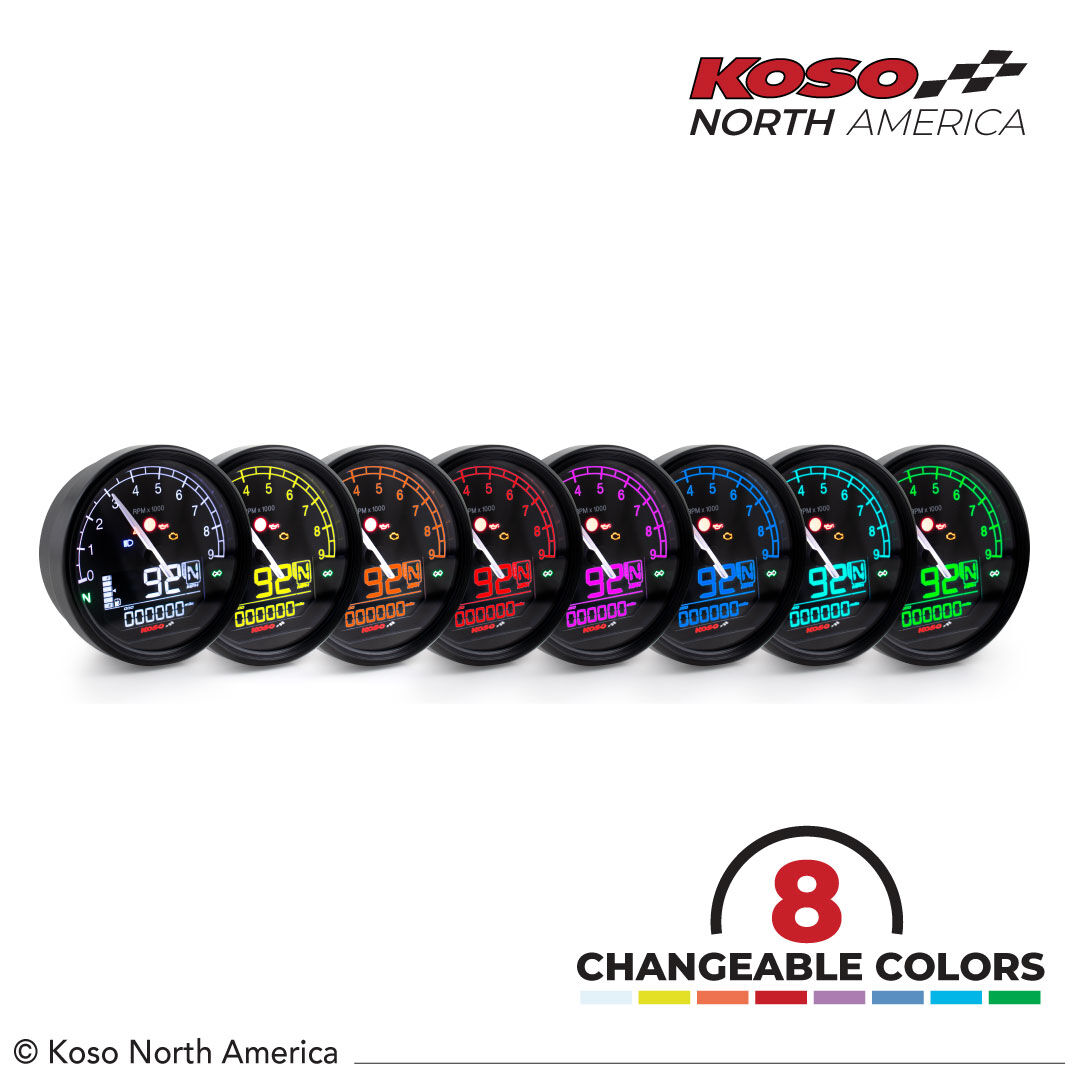 BRAND: Koso SKU: BA087000-HDKoso decided to release a bigger version of the TNT-05 that combines a tachometer and speed option. This version for Harley-Davidson® bikes has 8 changeable LCD backlight colors and indicator lights that will give you all the data you need with style even in the darkest conditions. The TNT-05 D80 also provide basic functions such as tripmeter, hour meter, fuel, voltage, clock, gear indicator and more.
