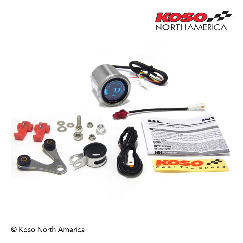 Koso’s DL‑01 meters use a reverse LCD display so when the meter is turned off, the screen is deep black.
