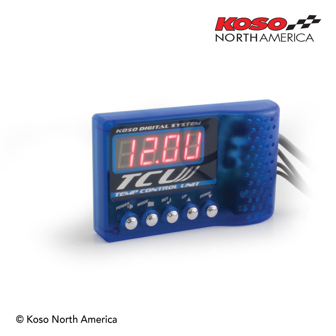 BRAND: Koso SKU: BC003000-WThis useful Temperature Control Unit is the perfect tool to help you regulate the temperature by turning on the fan. It also features a Volt Meter function with warning. Easy to install and to operate this meter is a great complement for any vehicle.