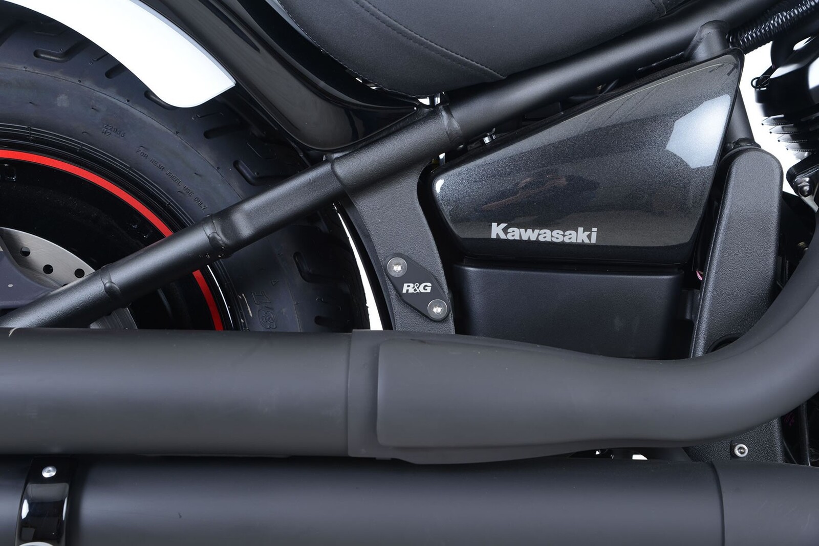 Once you have removed the pillion footrests, fill the void left behind and cover those otherwise exposed holes in the sub-frame with an R&G blanking plate.