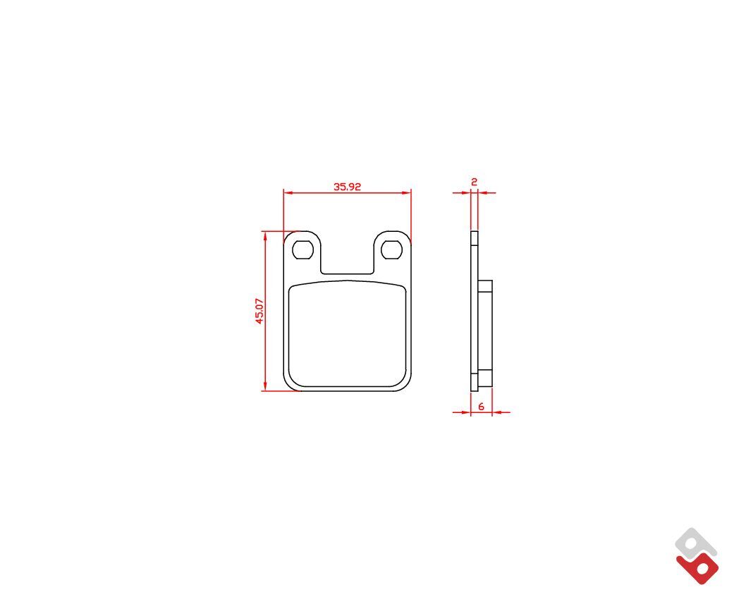 Brenta's sintered compound is copper-based and free of ferrous metals. Braking is very linear with a friction coefficient that fluctuates between 0.45 and 0.75 depending on the operating temperature and operating pressure. The ideal operating temperature is at around 200°C to 350°C. Braking has a linear bite (response to the first touch of the lever) and the performance is effective and progressive. It is not suitable for use on track with large displacement motorcycles. This product is ECE R90 approved.